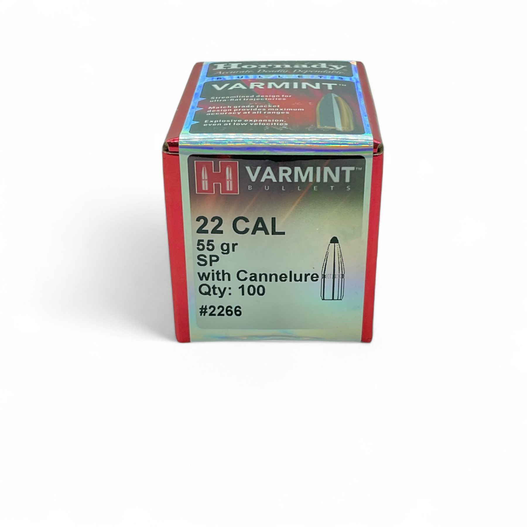 Hornady Varmint 22 Cal 55 Grain SP with Cannelure Projectiles, 100 Qty