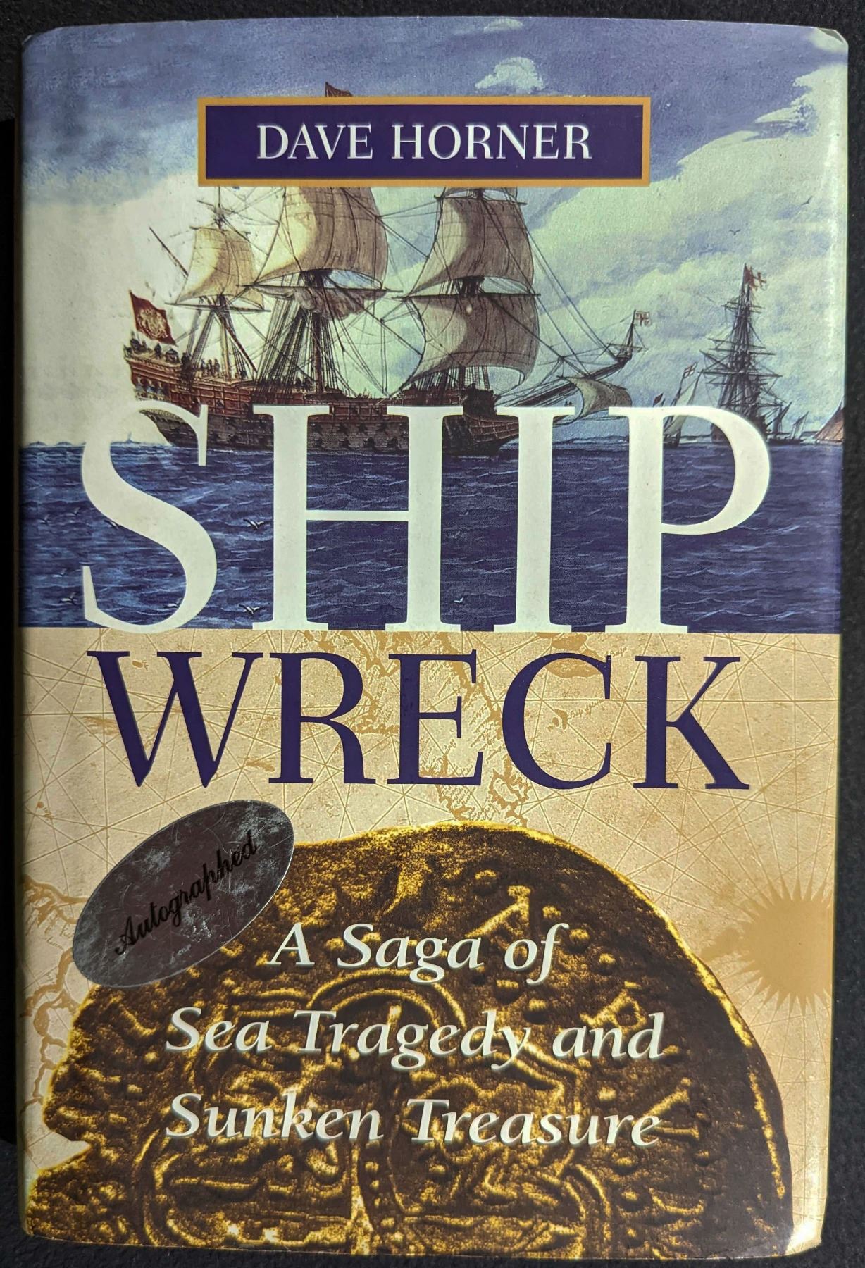 Horner, Dave. SHIPWRECK. A SAGA OF SEA TRAGEDY AND SUNKEN TREASURE. Sheridan House Inc. 1999. 8vo. (2), xviii, (2), 295, (7) pages. New York. first edition. original tan cloth, red gilt; dust jacket. document frontispiece. illustrated. maps. bibliography Fine. signed by the author. This book is an extensively researched story of the shipwreck and many subsequent salvage efforts of both "La Capitana" (which sank off Ecuador in 1654) and the "Maravillas" (which sank on Little Bahama Bank in 1656). The book includes both ancient and modern salvage efforts. Lot weight: 1 lbs 9oz. Subject(s): Sunken Treasure.