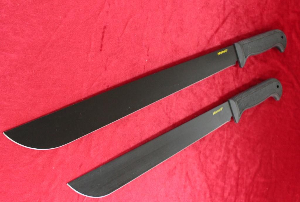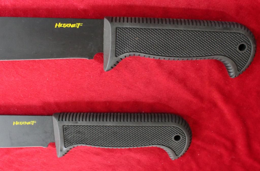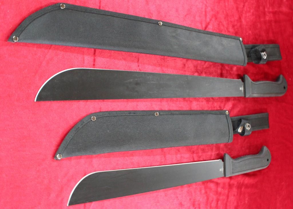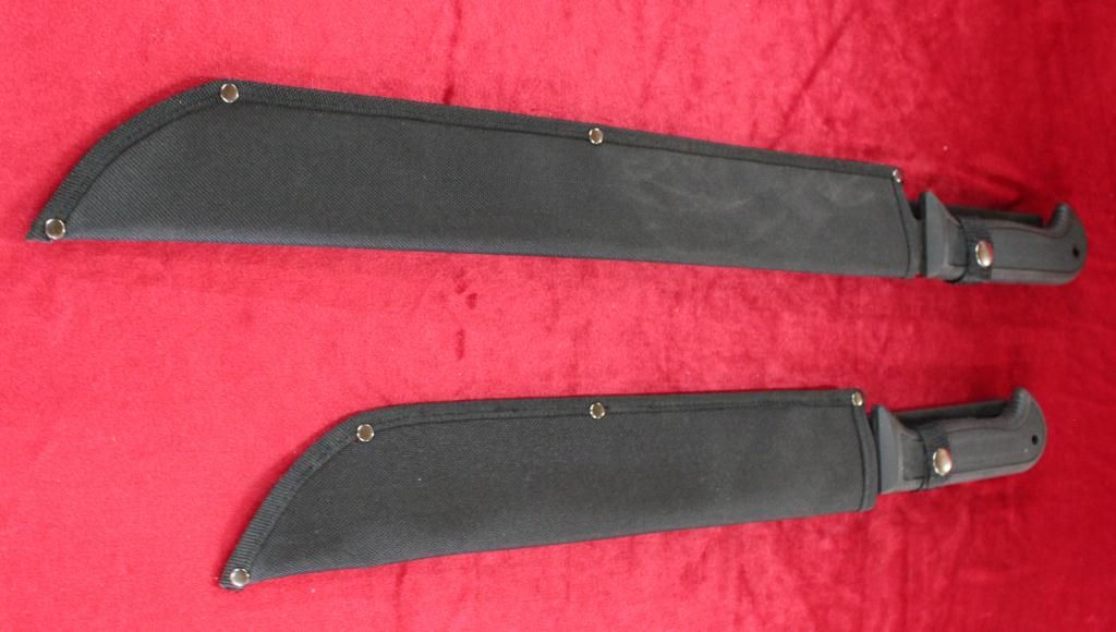 Steel 18" & 22" Blades, Checkered ABS Handles W/Lanyard Holes & Nylon Sheaths.