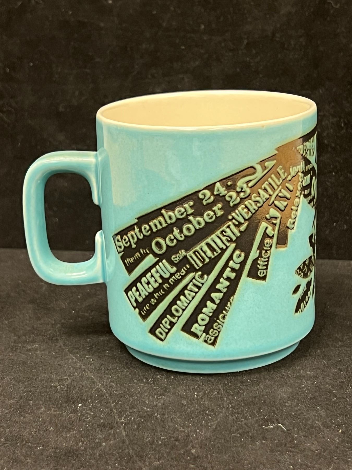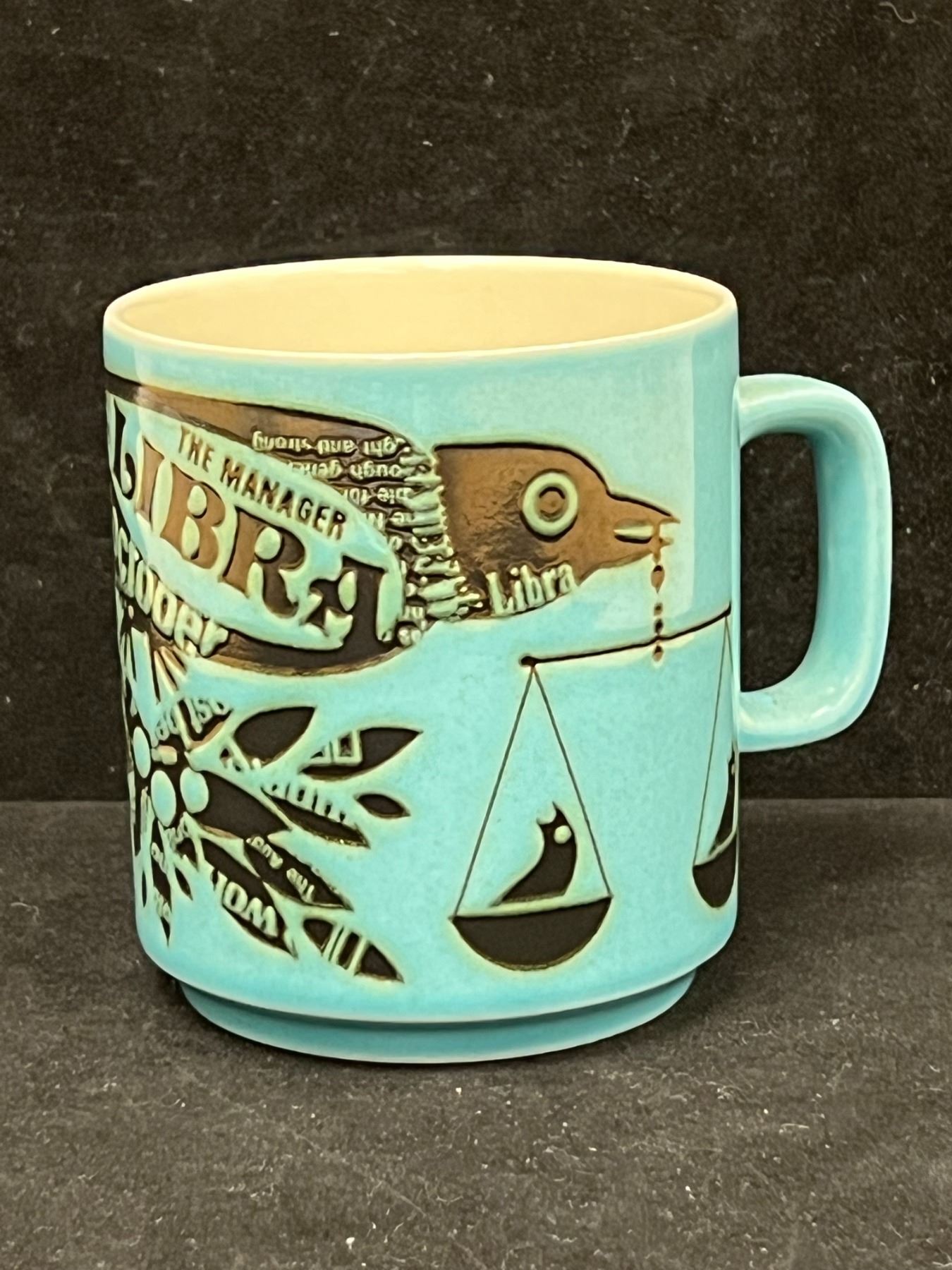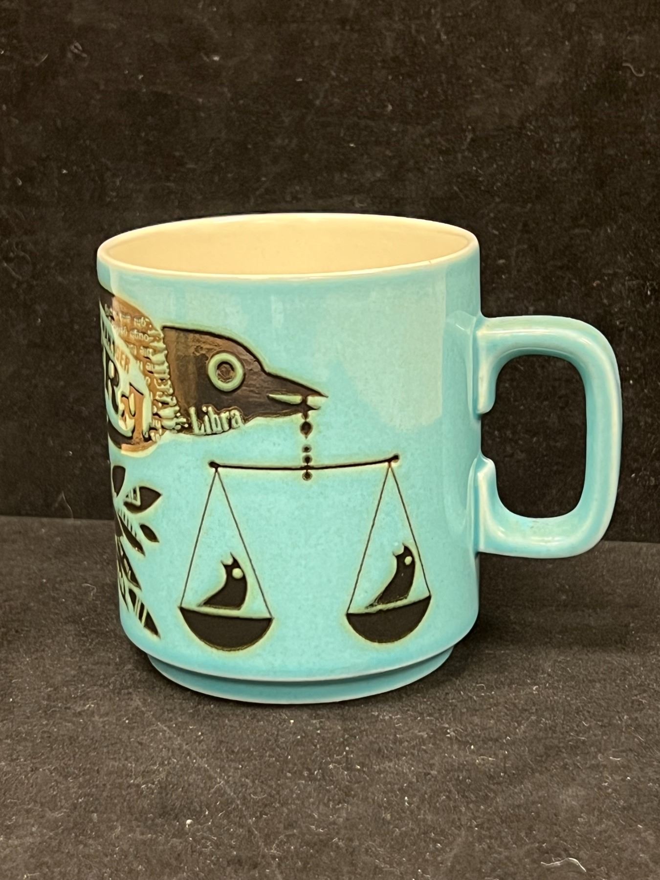 Hornsea Pottery Libra Zodiac Sign on Turquoise Coffee Mug - Mid Century (amazing color!)