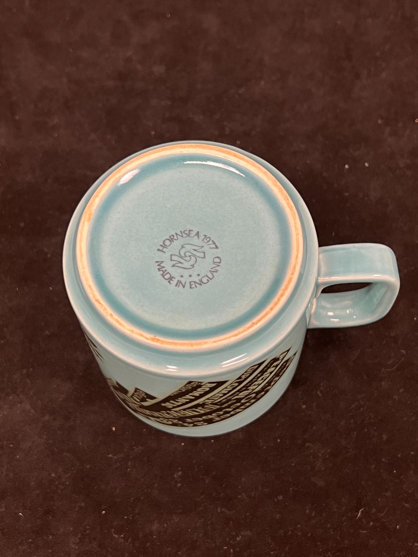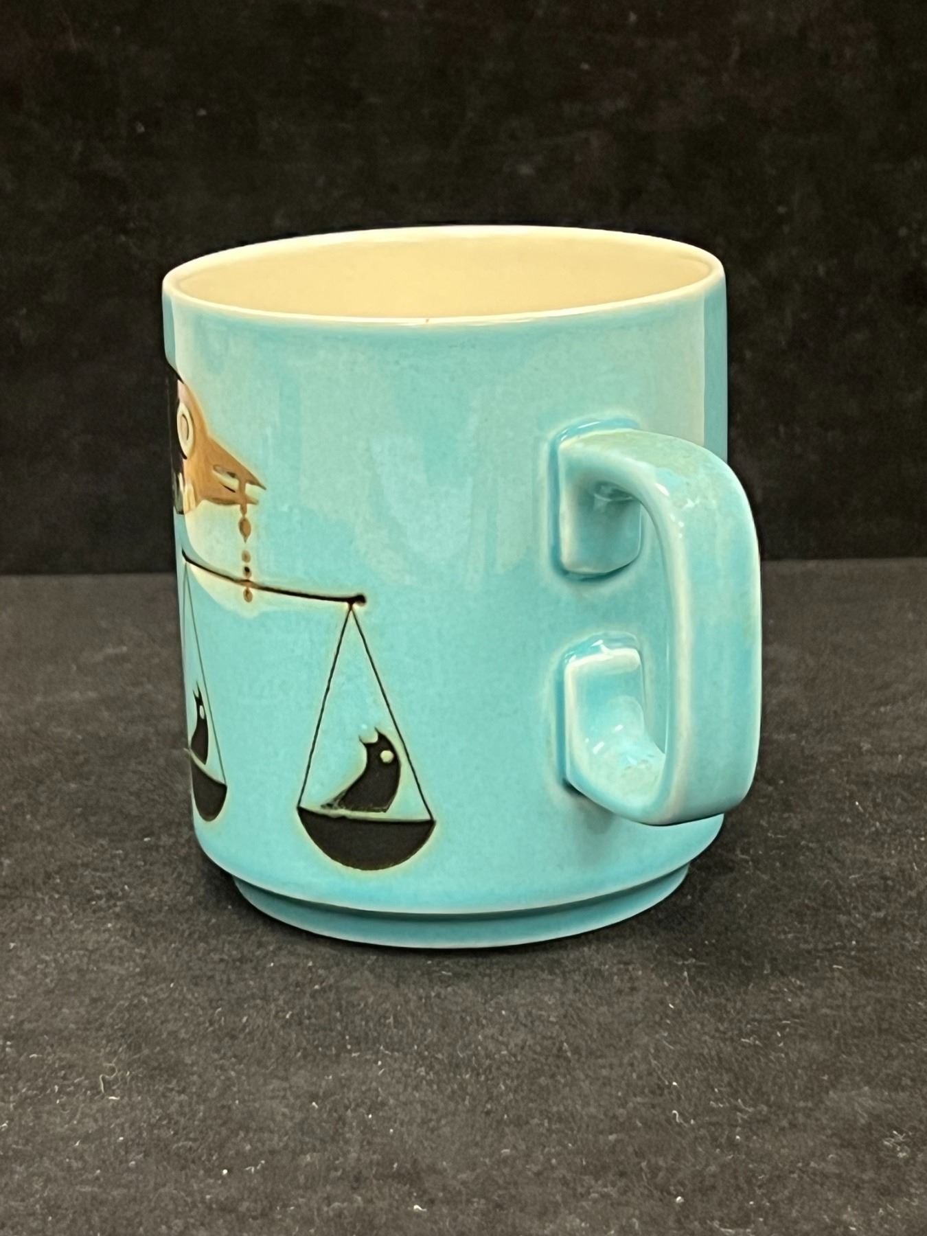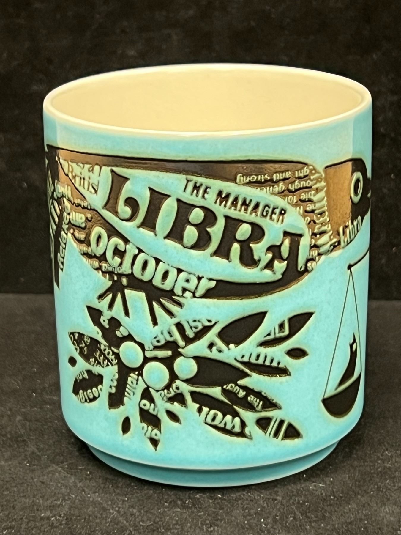 Hornsea Pottery Libra Zodiac Sign on Turquoise Coffee Mug - Mid Century (amazing color!)