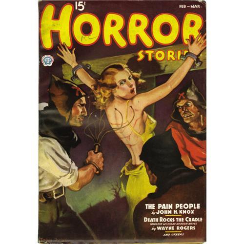 <B>Horror Stories V5#1 (Popular, 1937) Condition: FN+.</B></I> Cover date is Feb/37. Sadistic bondage/torture cover, and inside are stories to match. Bookery's Guide to the Pulps FN value = $350.