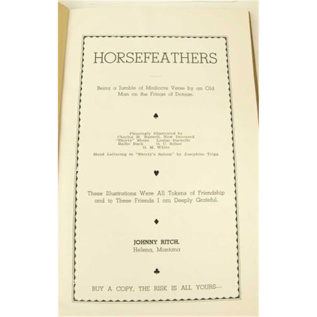 Horse Feathers by Johnny Ritch copyright 1940, signed by Helena MT. author and illustrations by Charles Russell, OC Selcer and others.