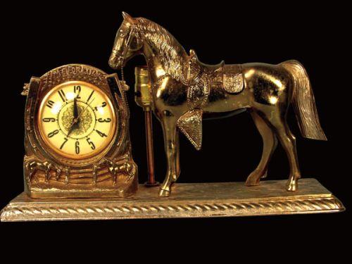 Horse Figure w/Clock, pot metal made by Lanshire. Entitled Time for Luck. Very good condition. 17 X 10 1/2 inches.
