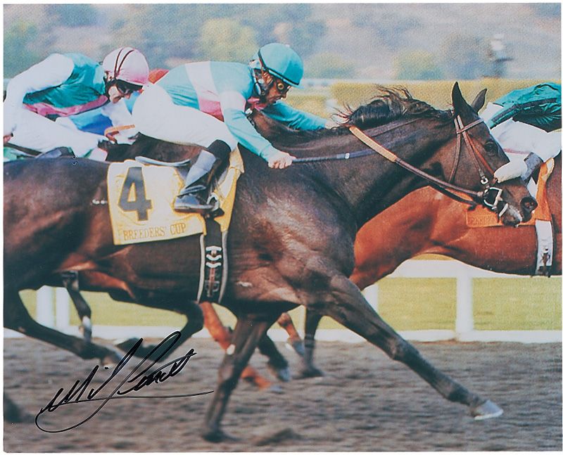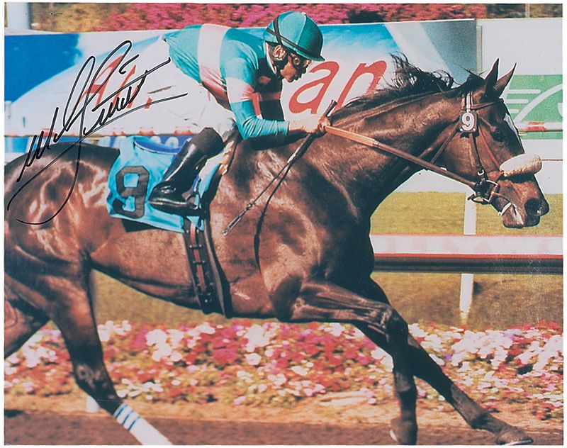 Two different color glossy 10 x 8 photos of Smith atop Zenyatta, each signed in black felt tip. In fine condition.