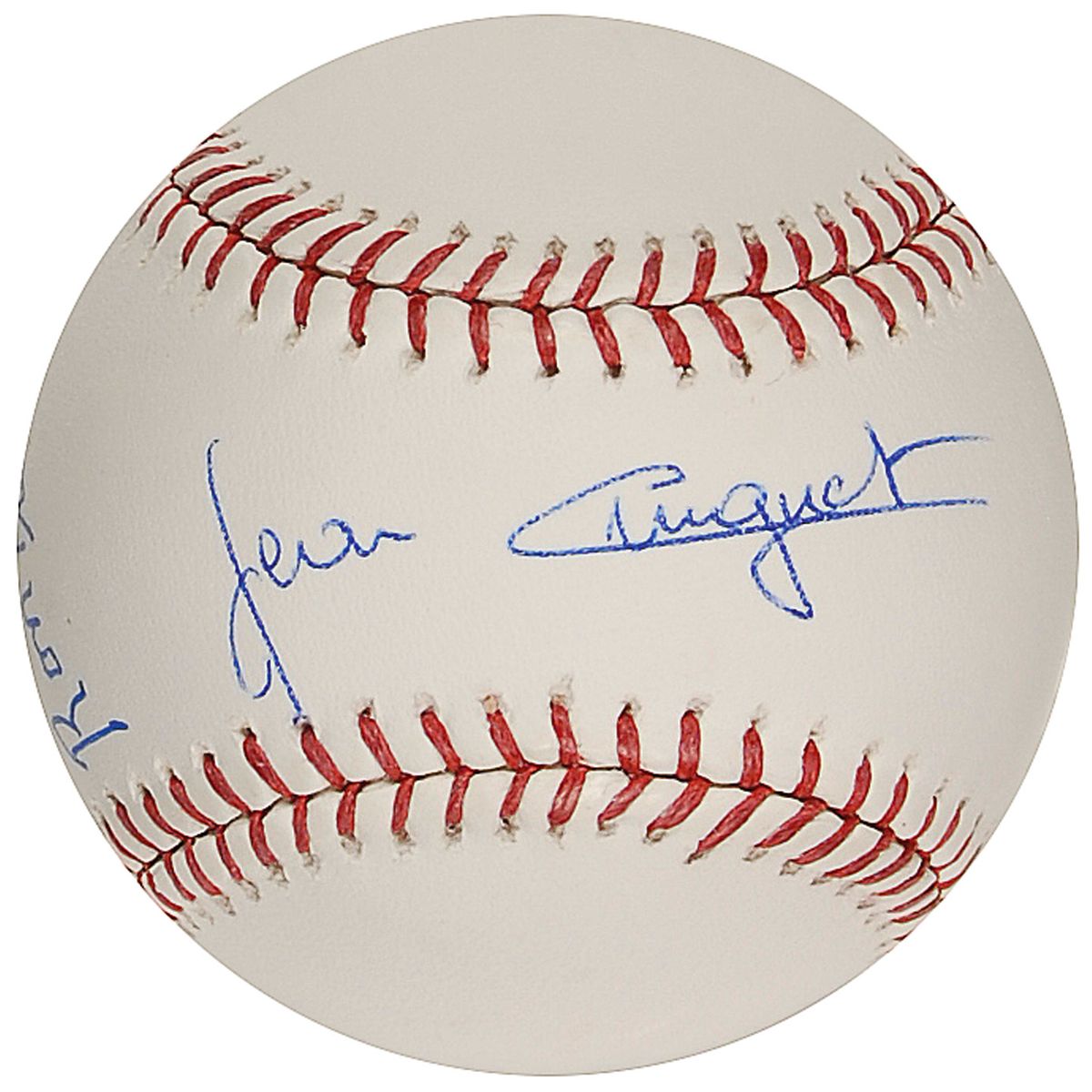 Official Rawlings Major League baseball signed in blue ballpoint by the last three Triple Crown winners: Jean Cruguet (ss), Ron Turcotte, and Steve Cauthen. In very fine condition.