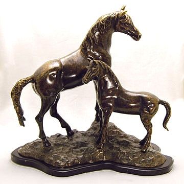 Horse With Colt Bronze Sculpture - 17"H 18"W 10 "D - Great Attention To Detail - Beautiful Finish - Lost Wax Cast