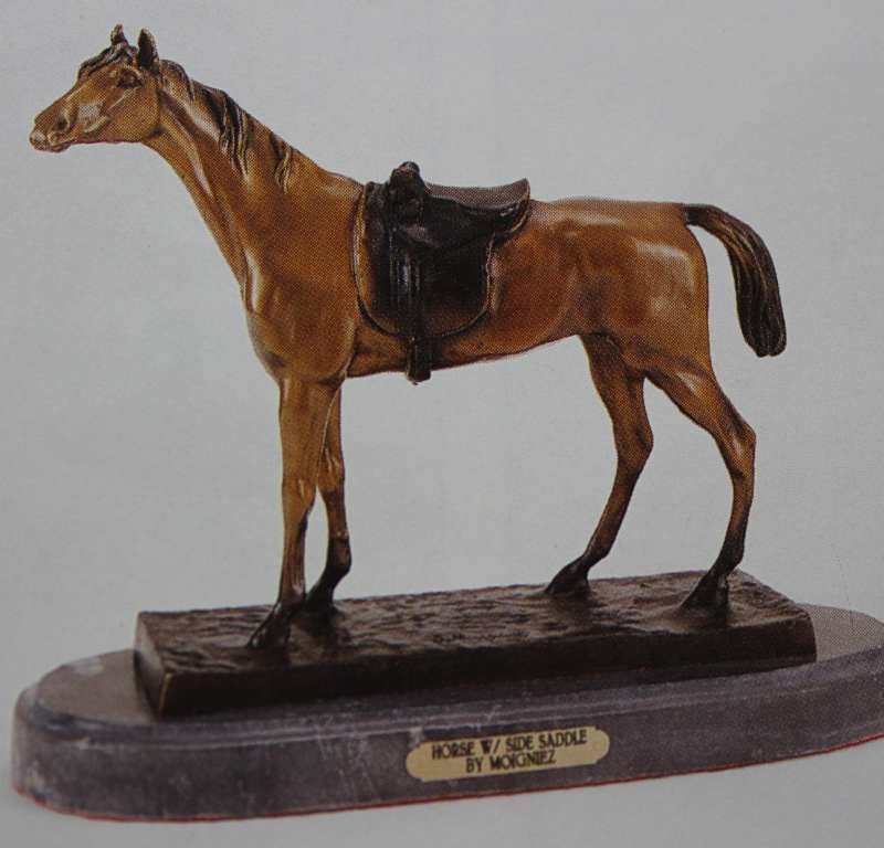 "Horse With Side Saddle" Bronze Sculpture - After Moigniez - Beautiful Patina - Mounted On A Fine Italian Marble Base - Beautifully Detailed - Signed - Mint Condition - 12"H X 16"W - Lost Wax Cast Bronze