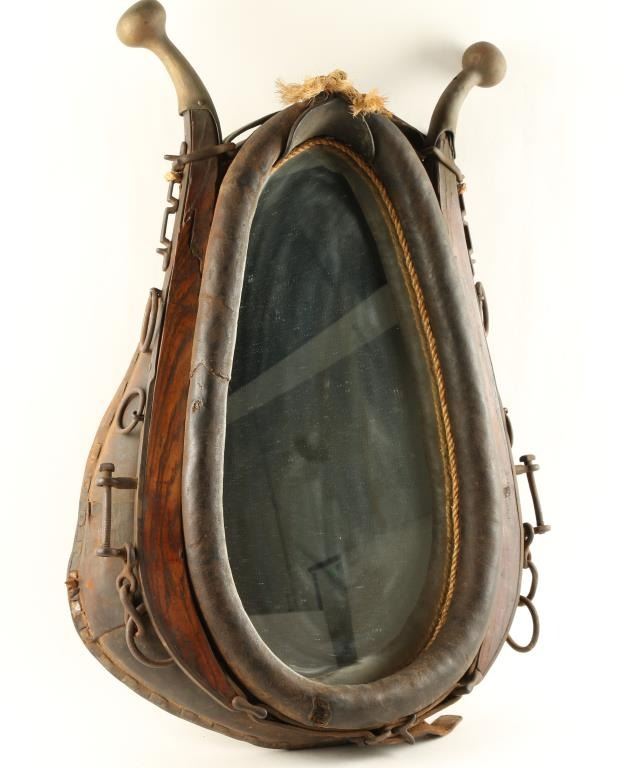 Horse collar mirror measuring 31” tall. Shows age and would be great for rustic western décor. Est.: $75-$150