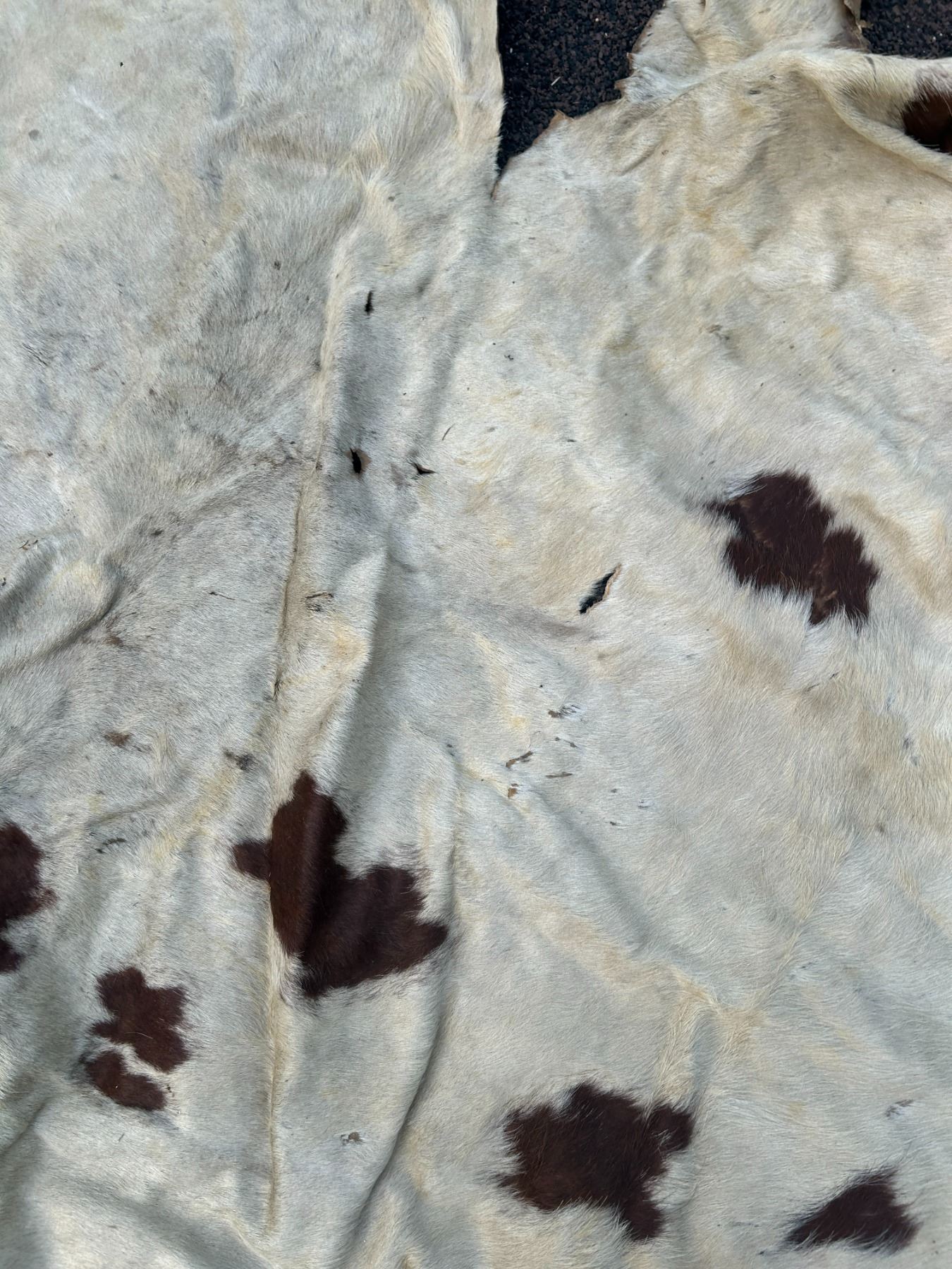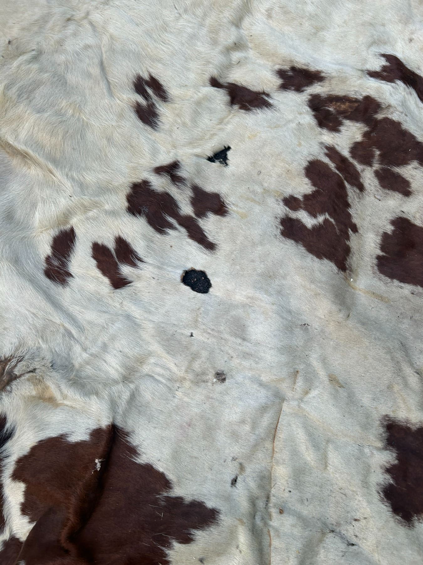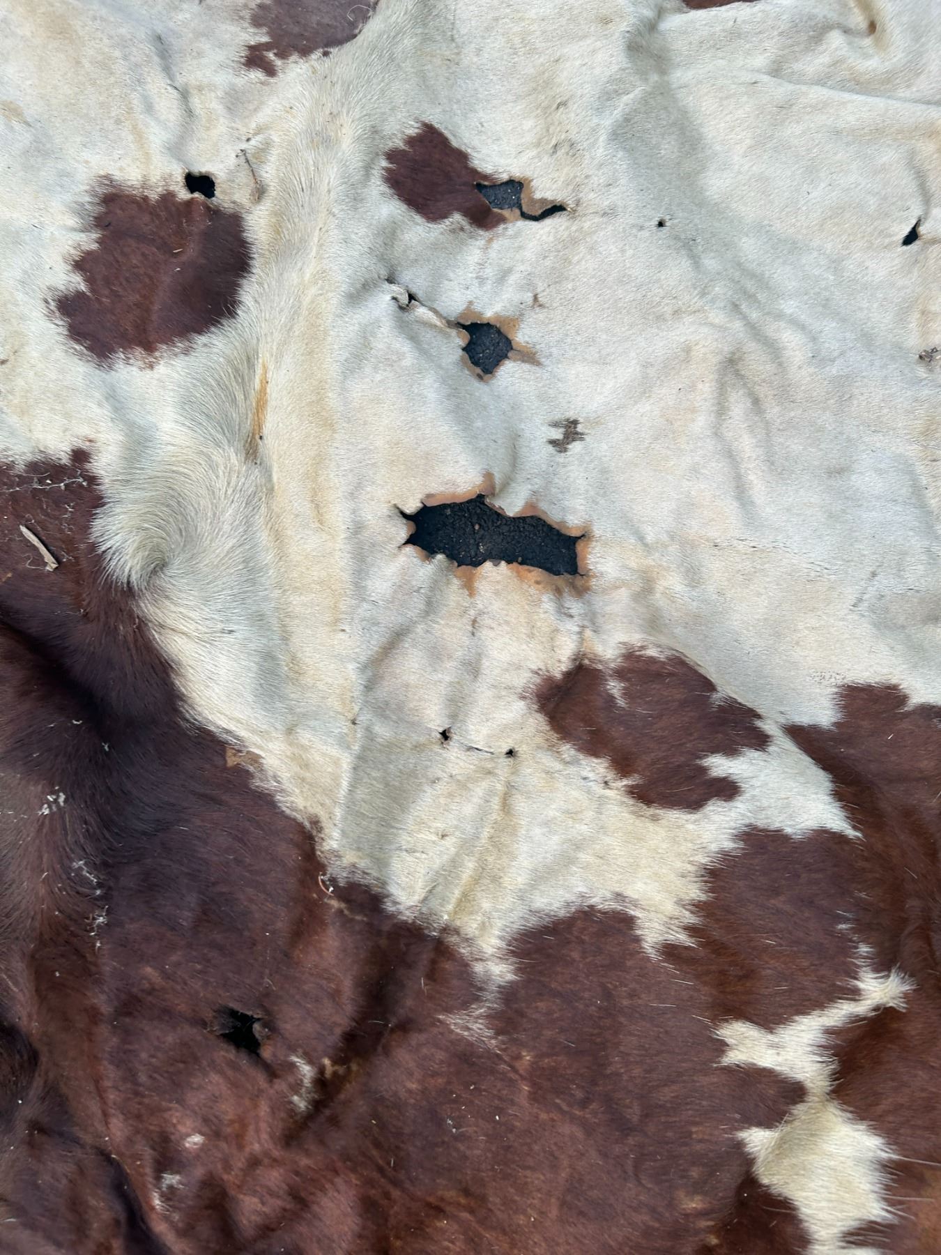 Horse hide blanket 70"x66" at widest points-tanned back- paint- damaged in spots