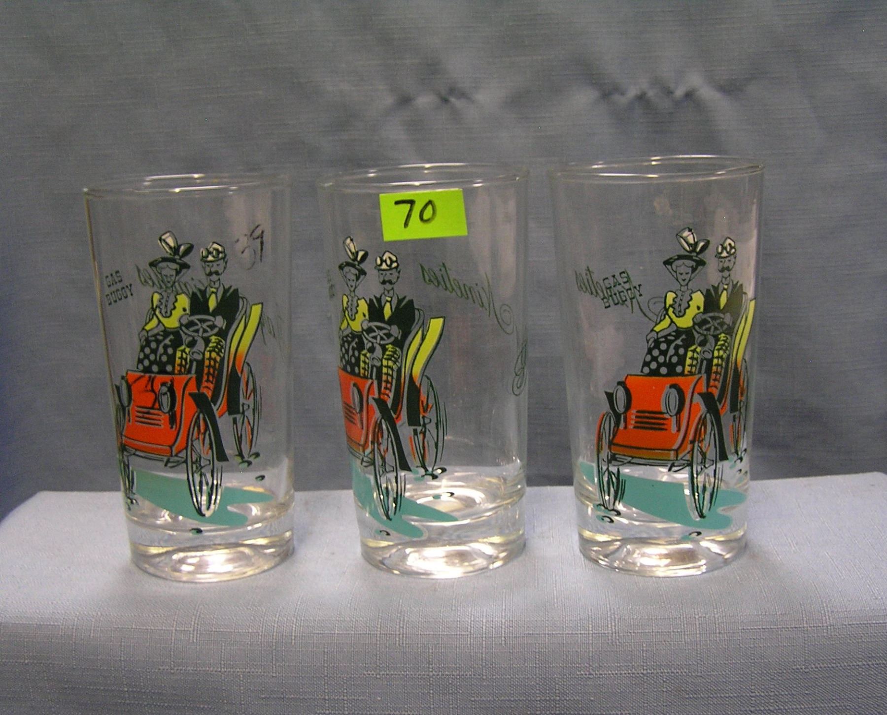 Group of three gay 1890s Horseless carriage automobile drinking glasses est. value $75.00-$100.00