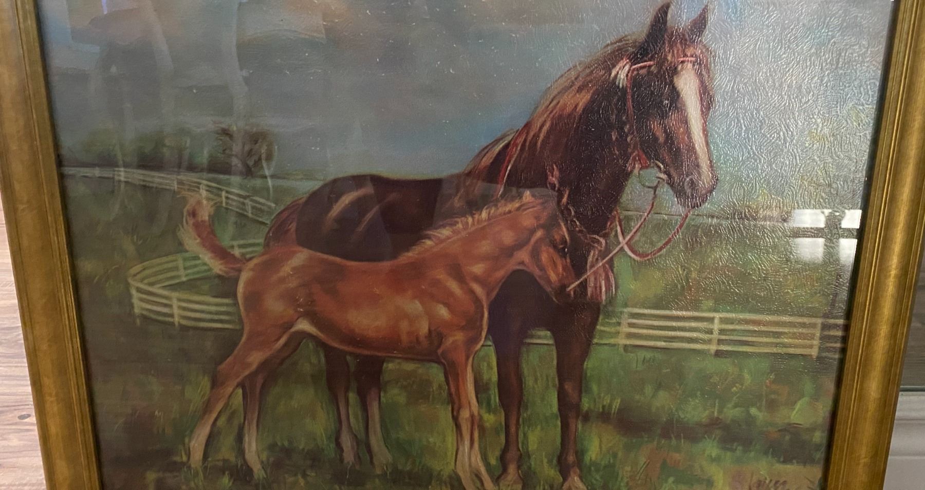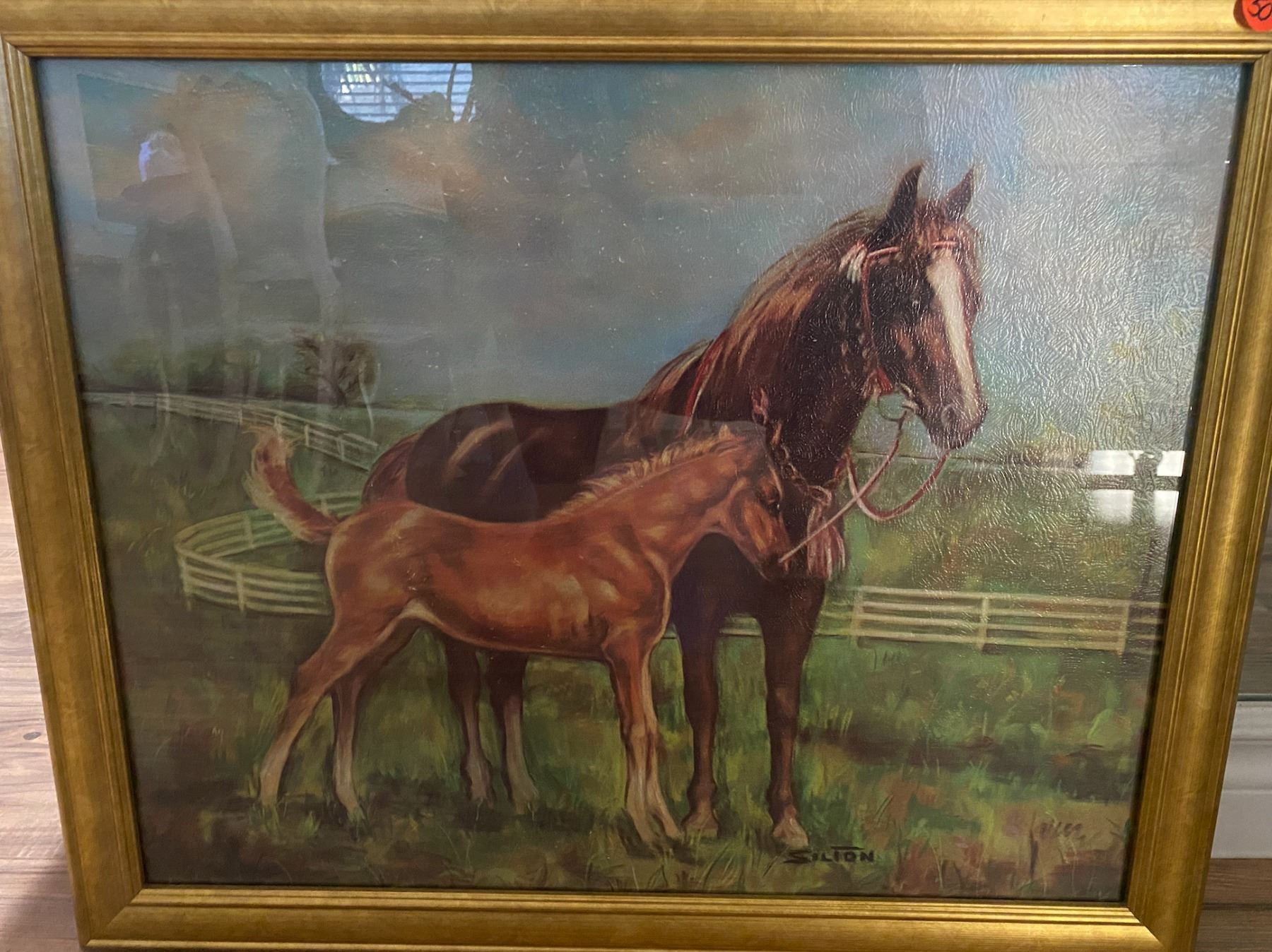 Horses in field, by Silton: Print, in Frame, 23x19" Framed