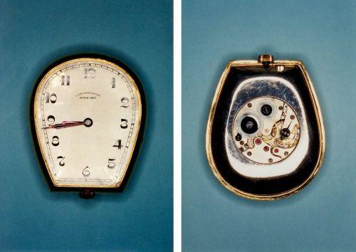Montre de poche en forme de fer à cheval, cadran argenté signé CHRONOMETRE MAXIMA, boîte or 18 cts, échappement à ancre, 15 rubis, env. 1930
