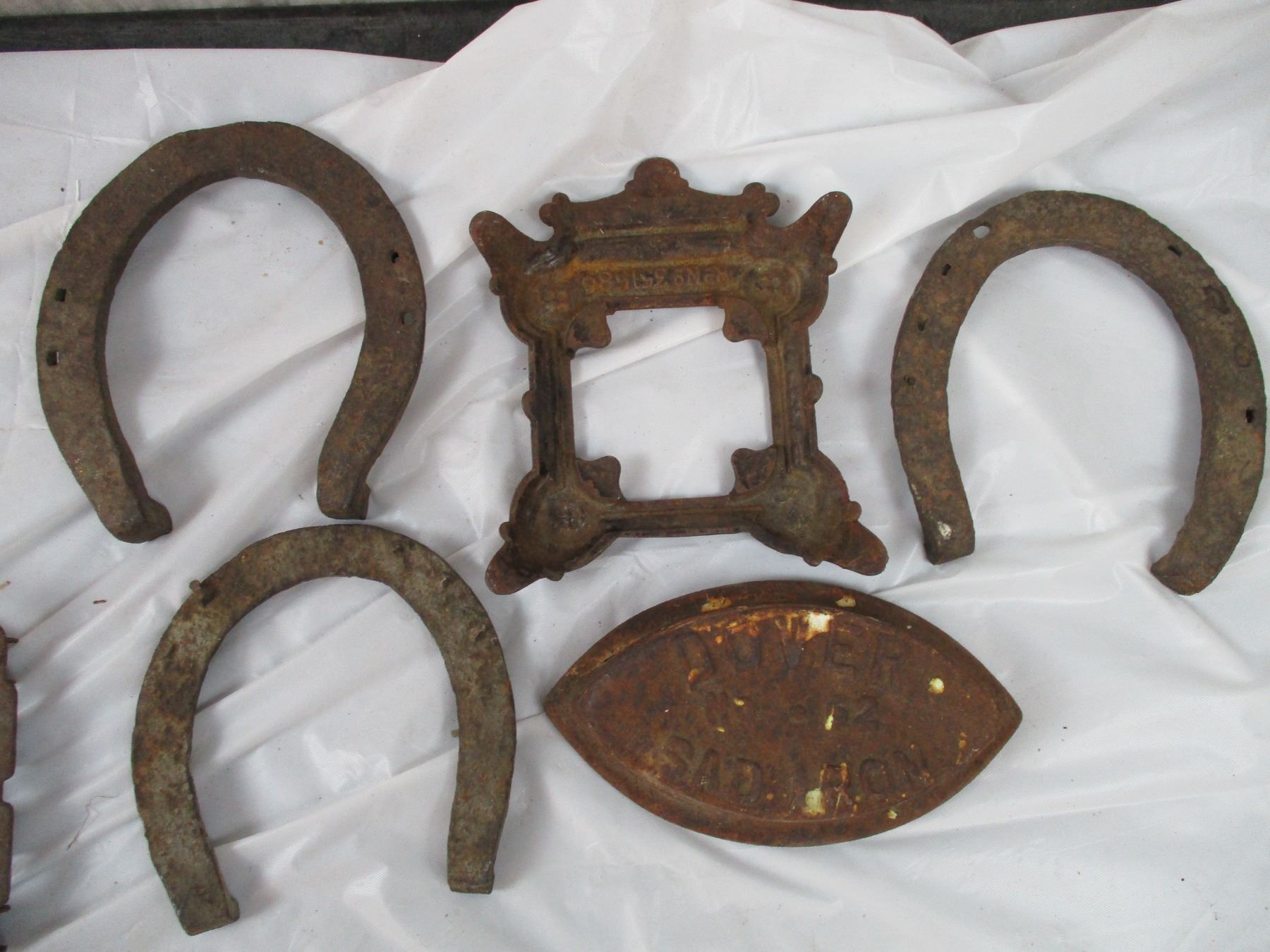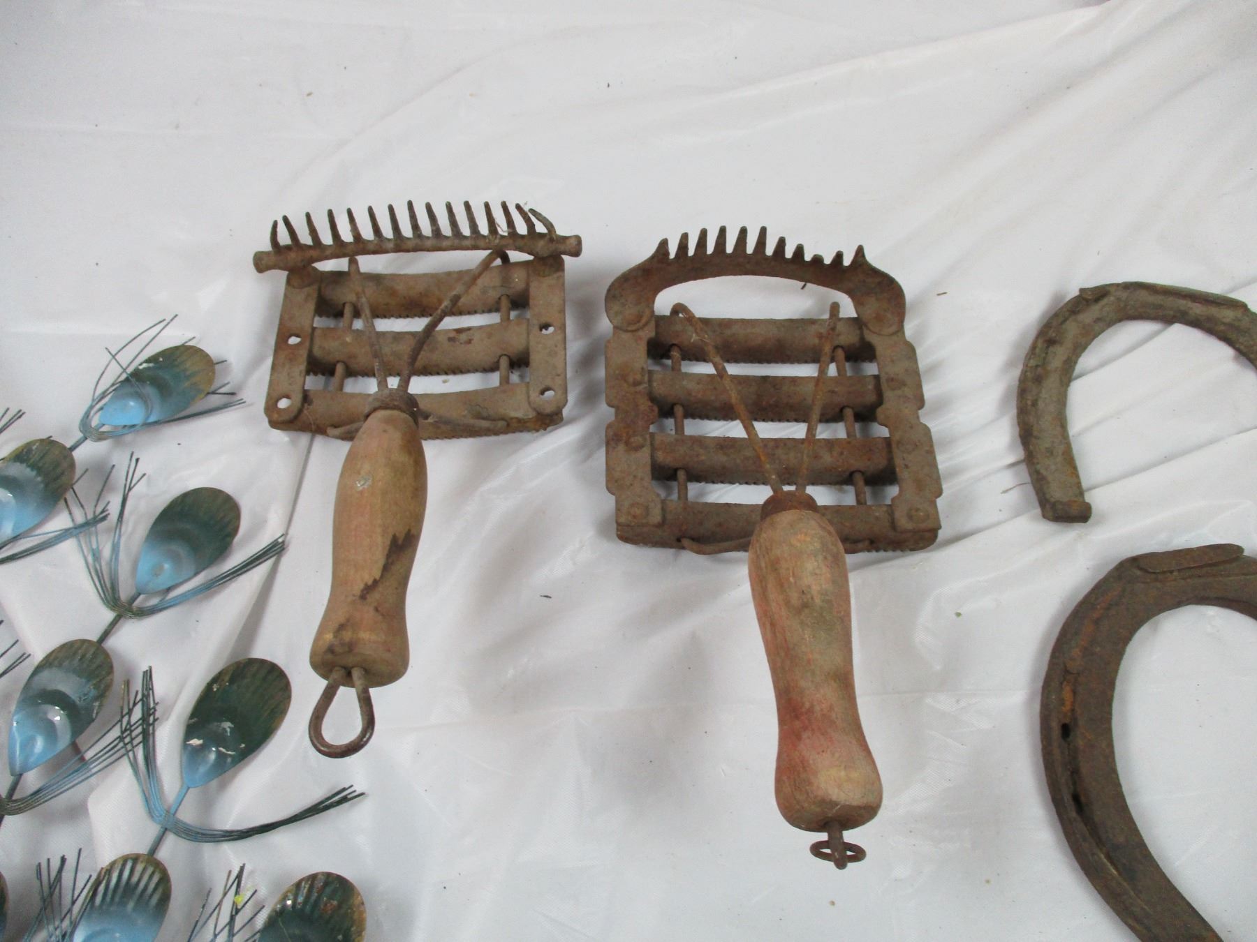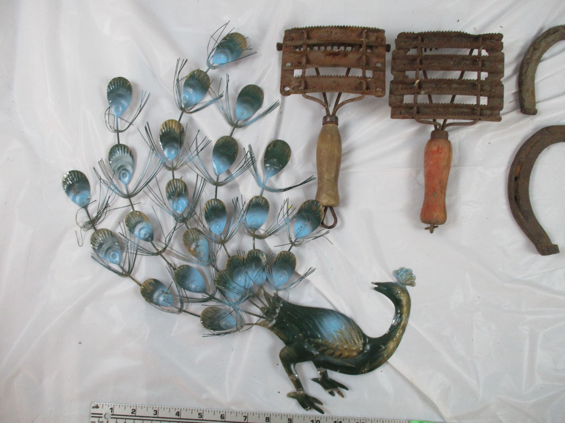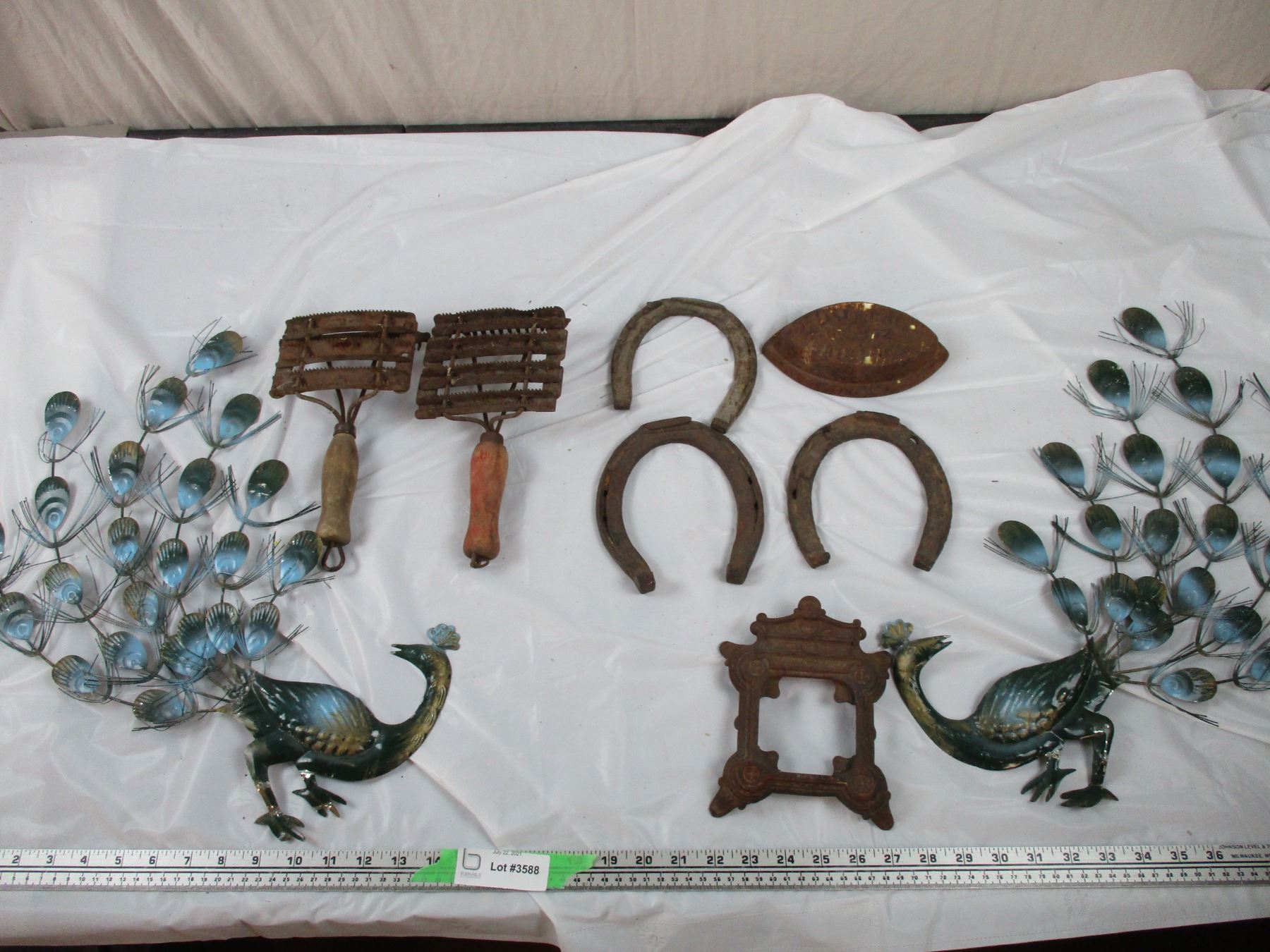 Horseshoes, Brushes, Sad Iron, Pheasant Tins