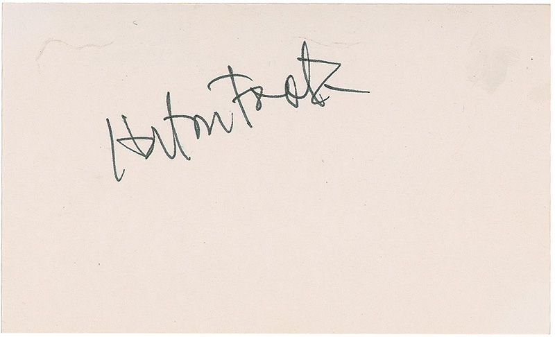 Screenwriter (1916–2009) best known for his screenplay for the film To Kill a Mockingbird. Ink signature, “Horton Foote,” on an off-white 5 x 3 card. In fine condition.