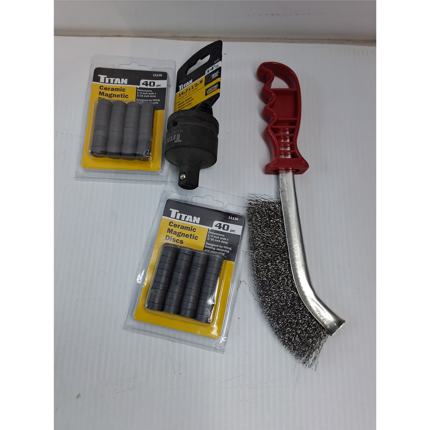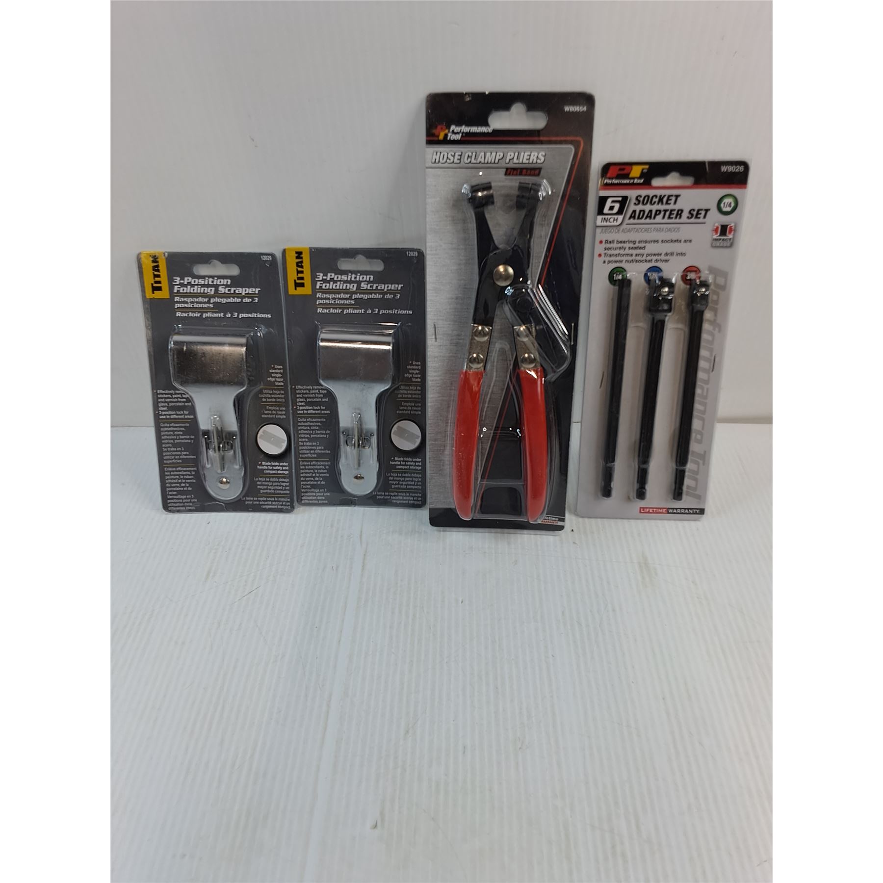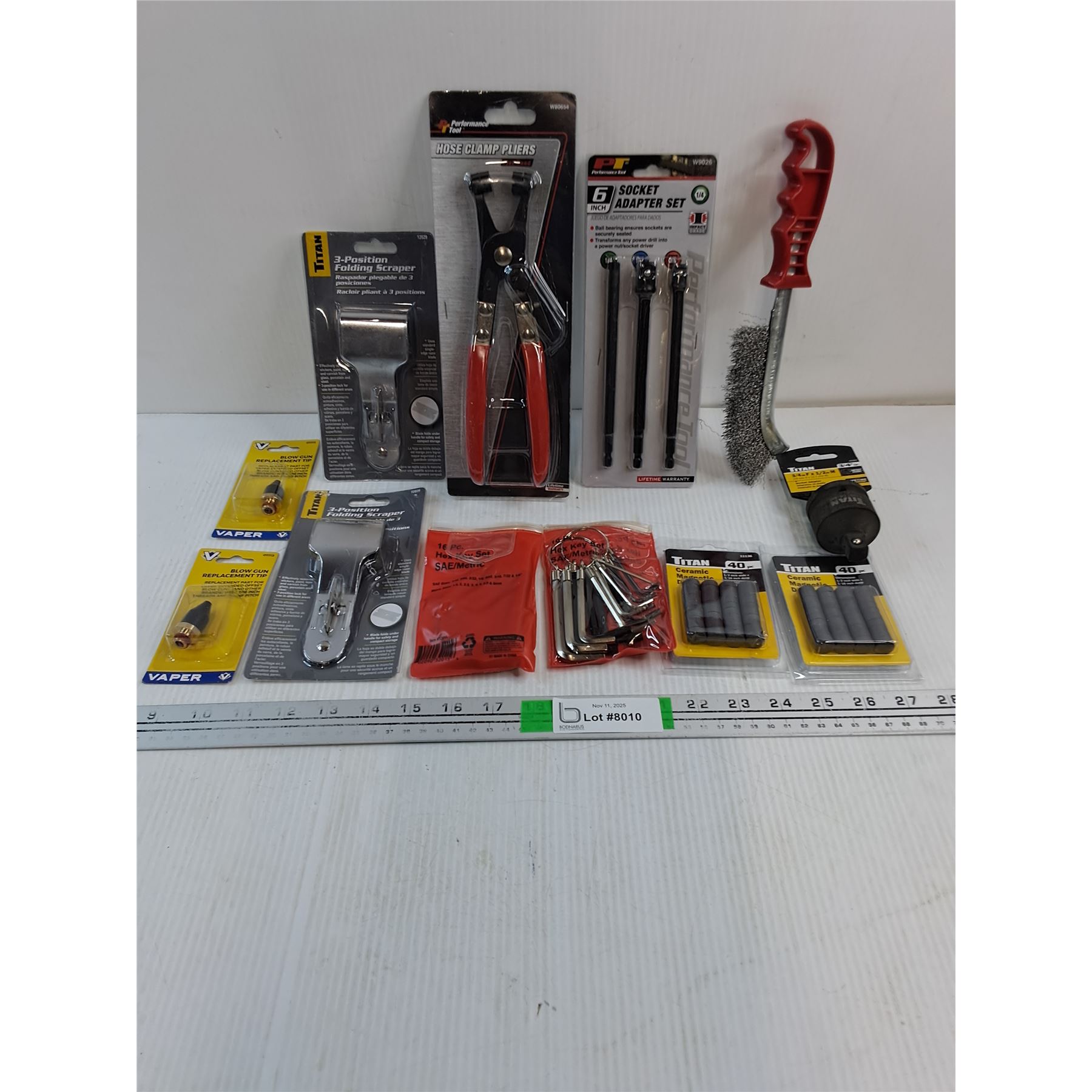 Hose Clamp Pliers,(2) Folding Scrapers,(2) Hex Key Sets,(2) Ceramic Magnetic Discs and more as pictu