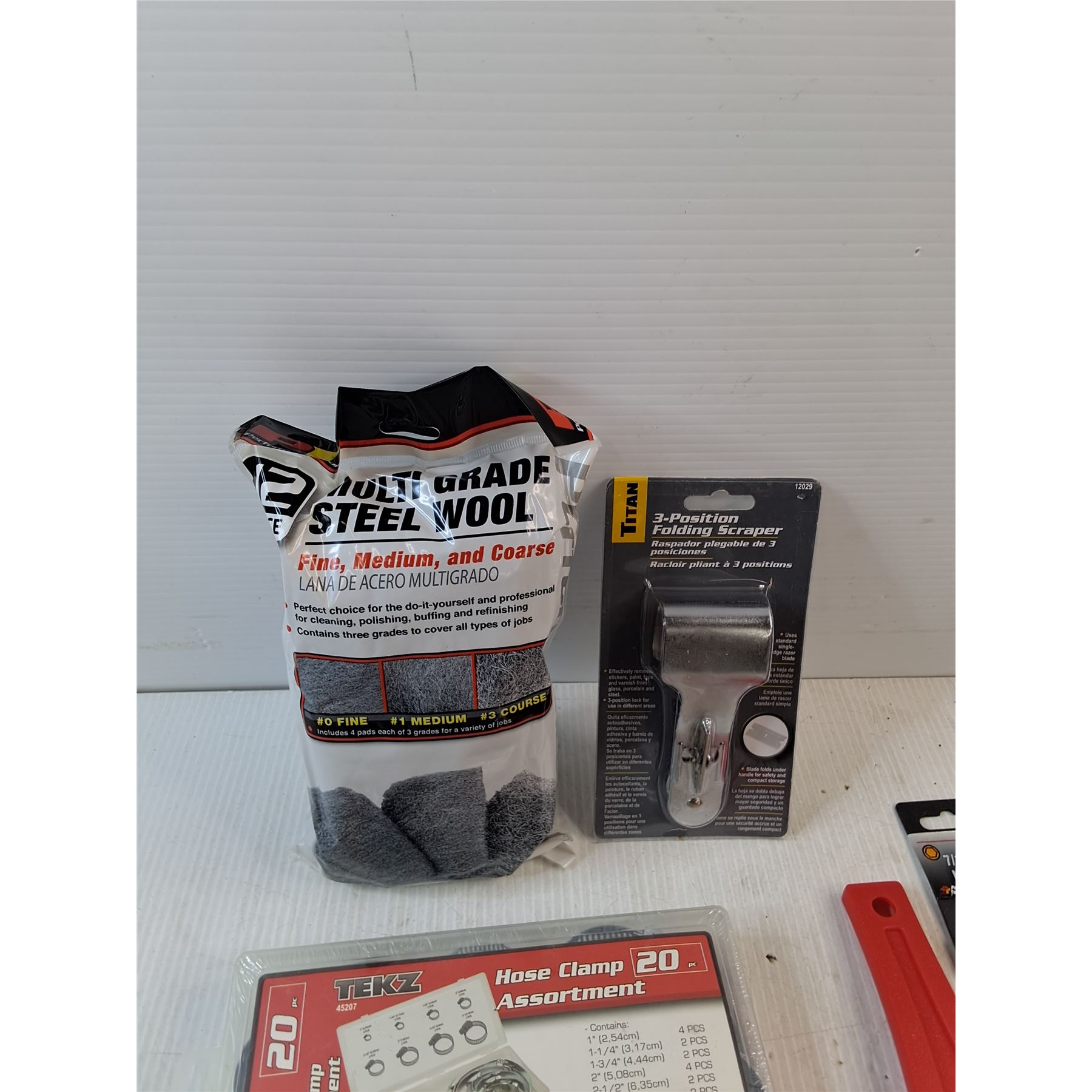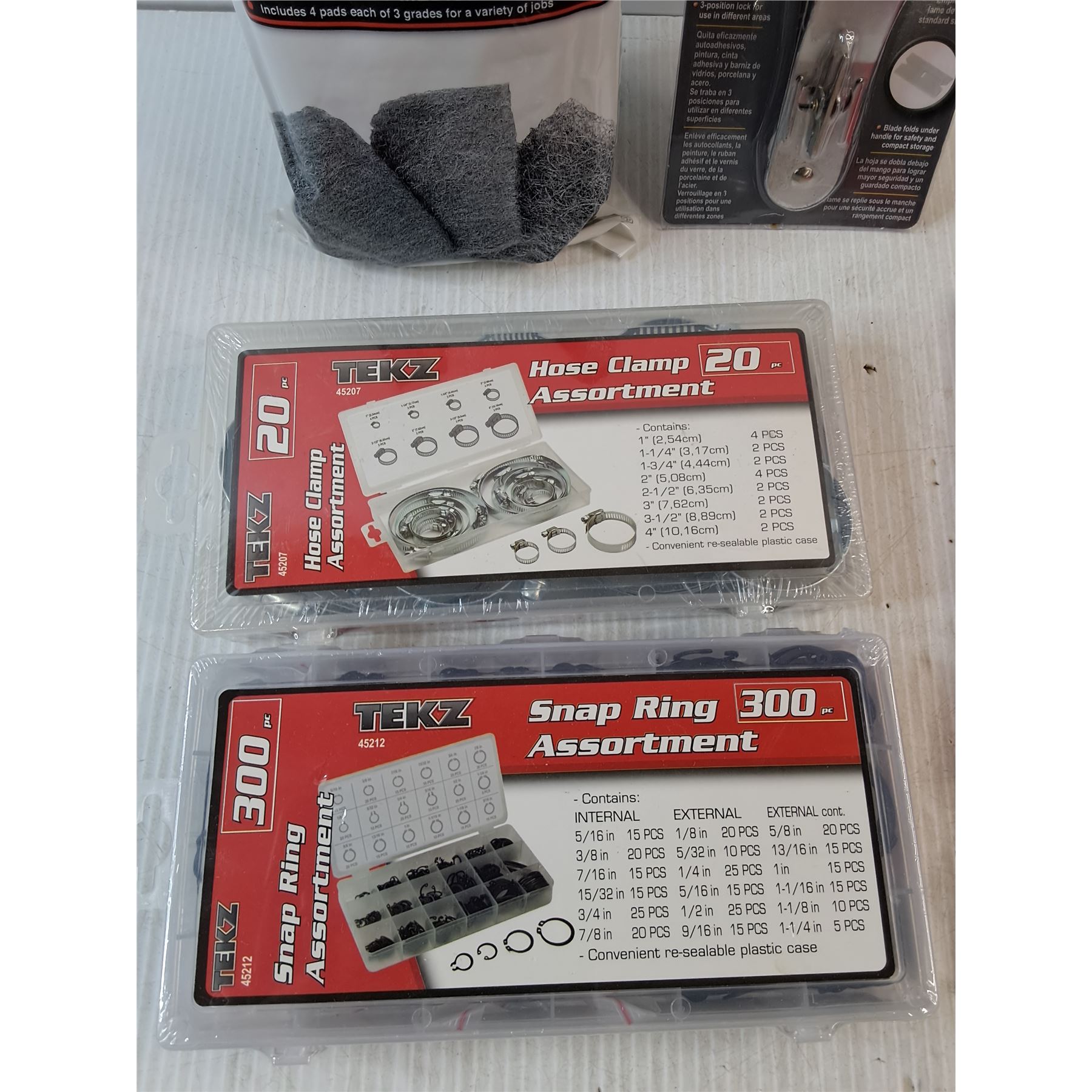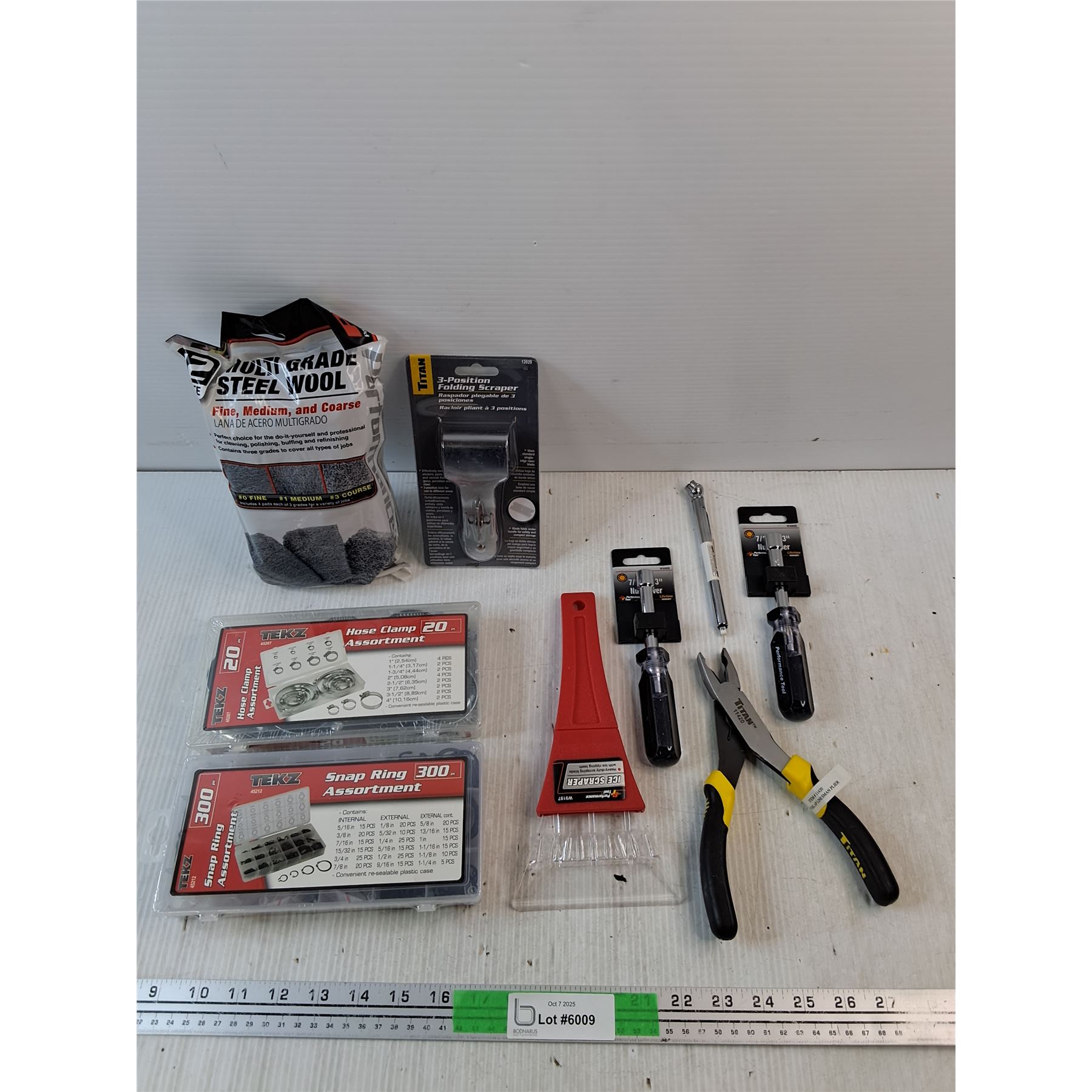 Hose Clamp & Snap Ring Assortment, Multi Grade Steel Wool, Nut Drivers, Pliers, Misc