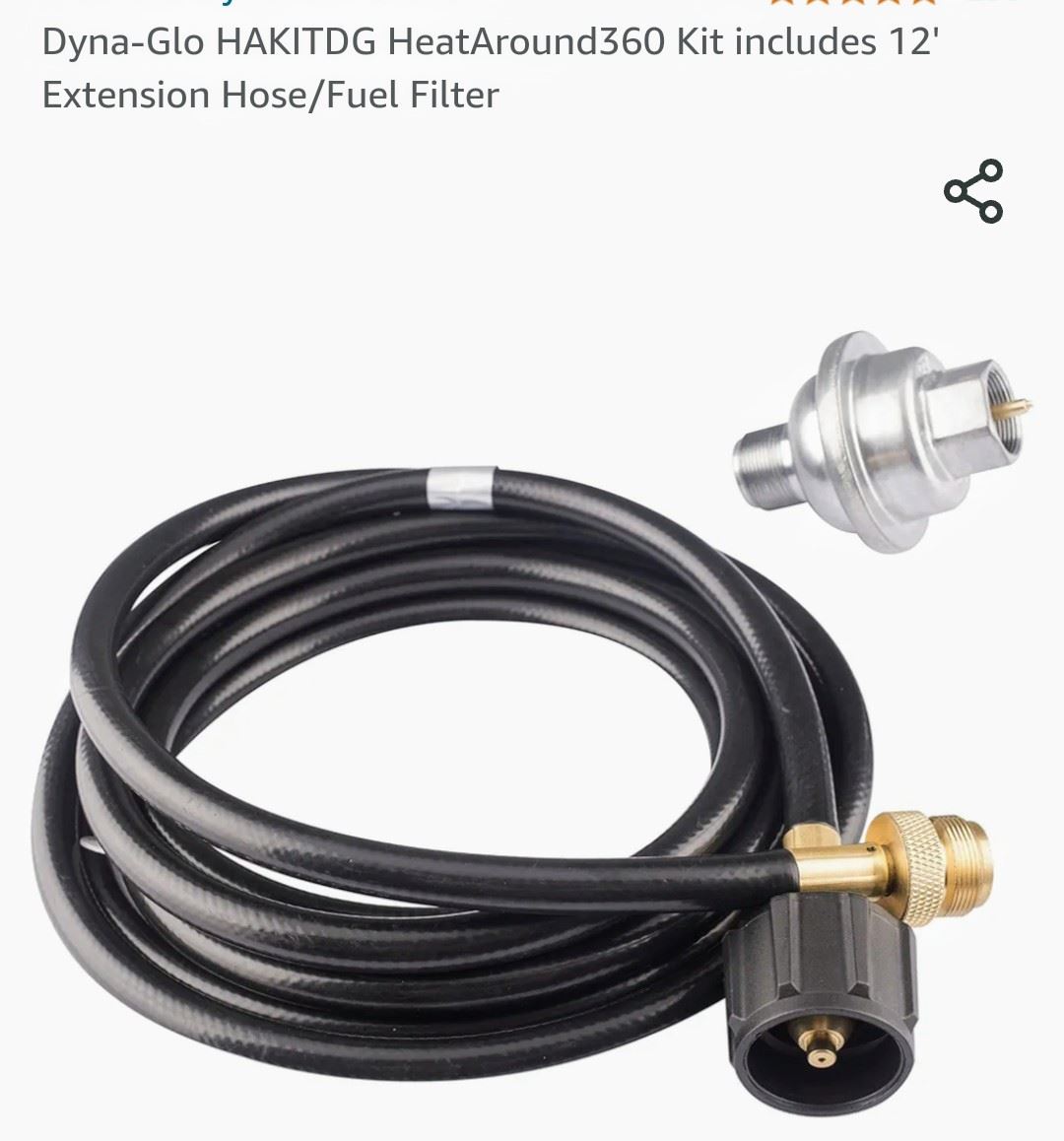 12-foot extension hose with fuel filter, compatible with Dyna-Glo HeatAround360, new.