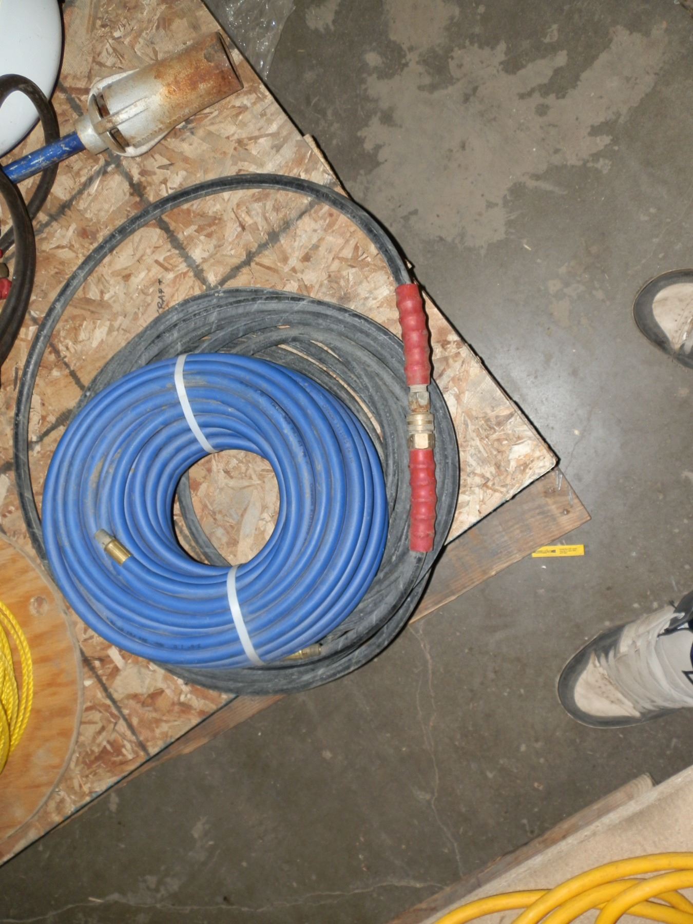 you get a ail hose and a pressure washer hose...used