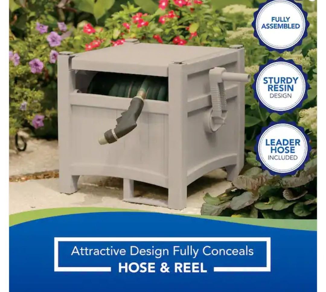 Suncadt Hideaway, 100' Resin Garden Hose Reel, For 5/8" Hoses, Style And Color May Not Be identical to Picture, Shelf Pull, Like New Condition