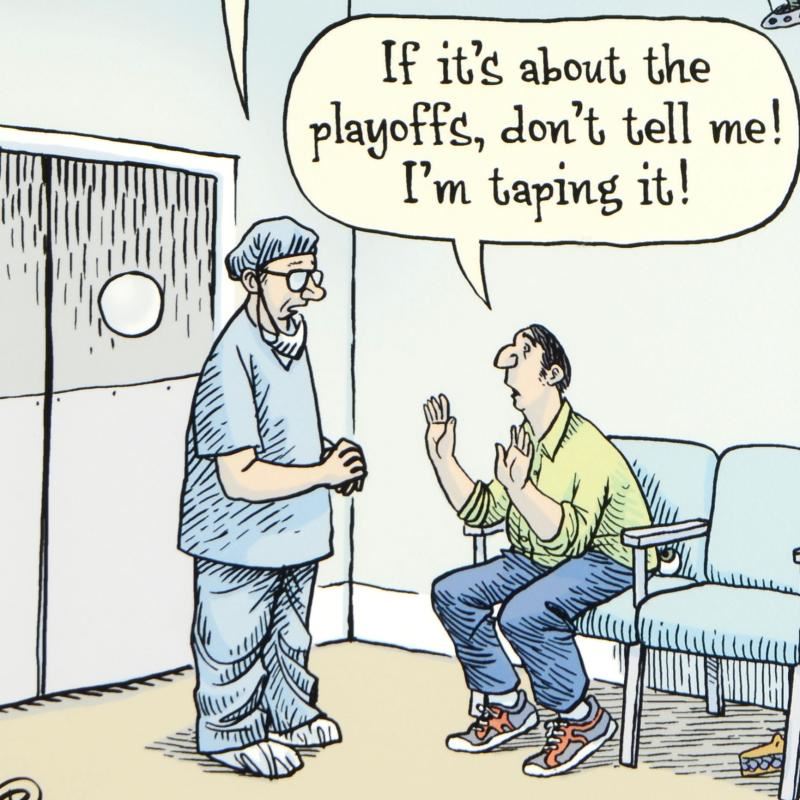Enter a surreal and satirical world of twisted imagination and award winning creativity. "Hospital Playoffs" is a limited edition giclee on paper by Dan Piraro, creator of the critically acclaimed and award winning comic strip, Bizarro! This piece is framed, numbered and hand signed by the artist! Includes Certificate of Authenticity! Measures approx. 17" x 19" (with frame), 9.5" x 11.5" (image).