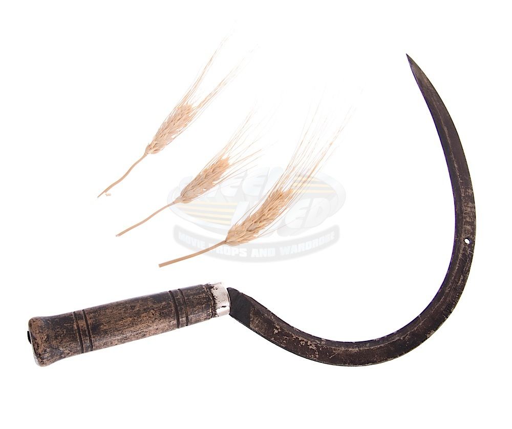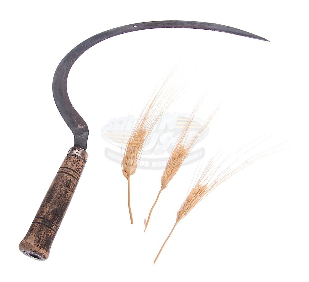 (Open Road Films, 2013) This sickle and strands of wheat were acquired by the production for use by various actors. The lot included three strands of wheat that are dried out and each measure approximately 8" in length and a metal sickle with wood handle that measures 16" in length. Wear from use is present.