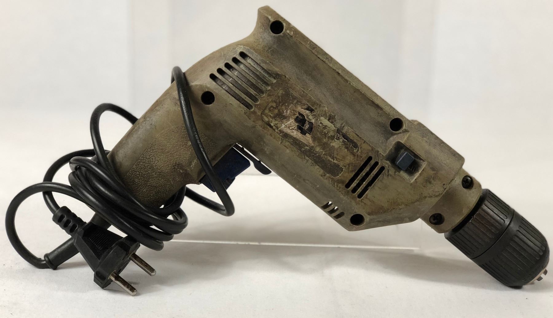 Prop drill used in the production of Hostel: Part II (2007), the grisly bloody movie where three American college students studying abroad are lured to a Slovakian hostel, and discover the grim reality behind it.