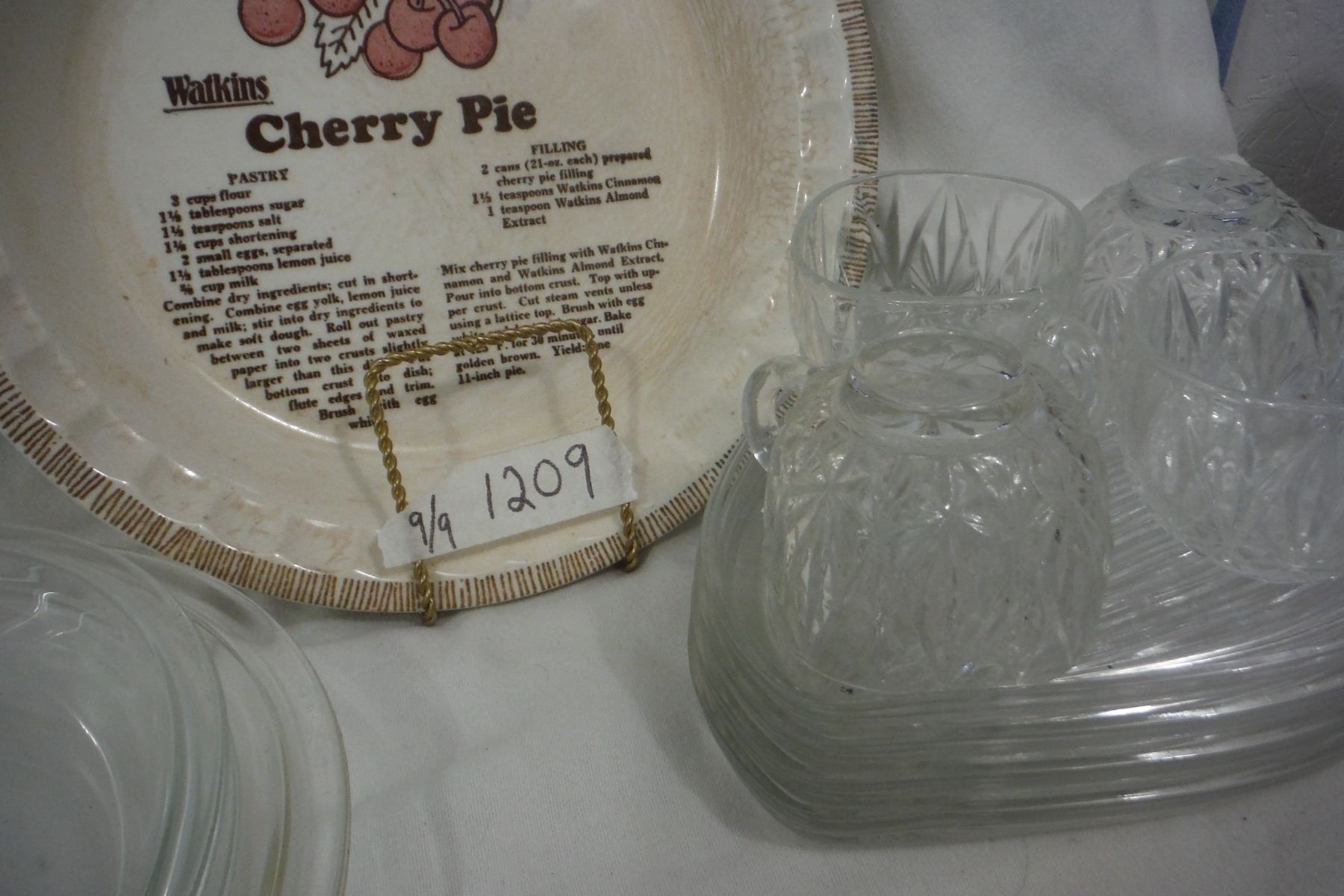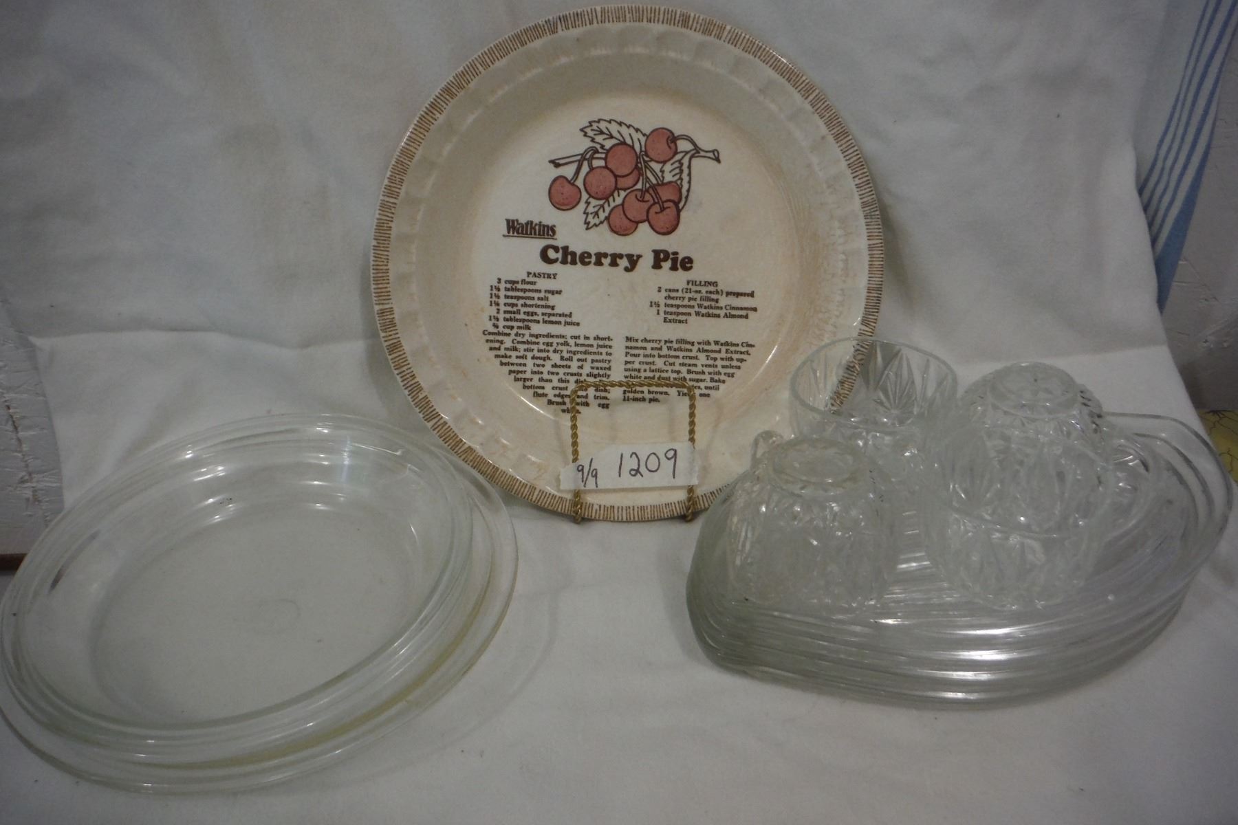 Hostess plate and cup set and 3 clear and cherry pie plates