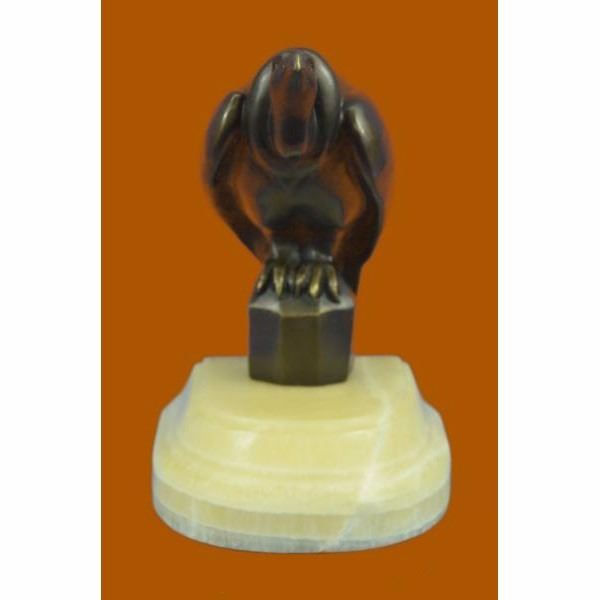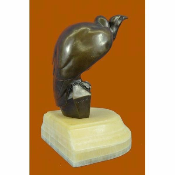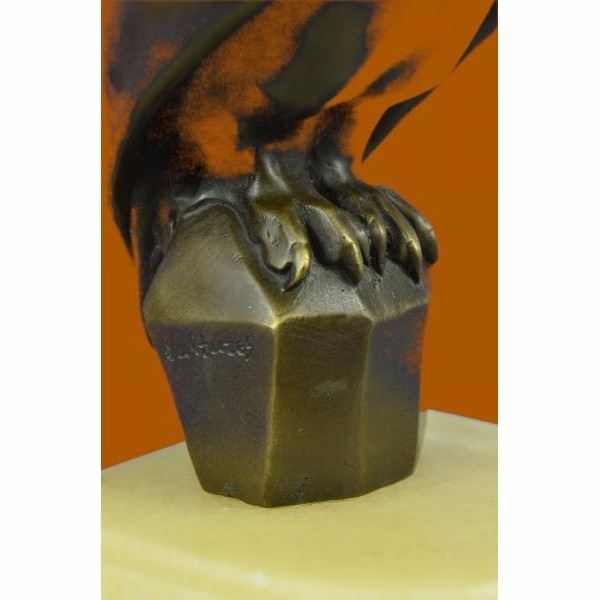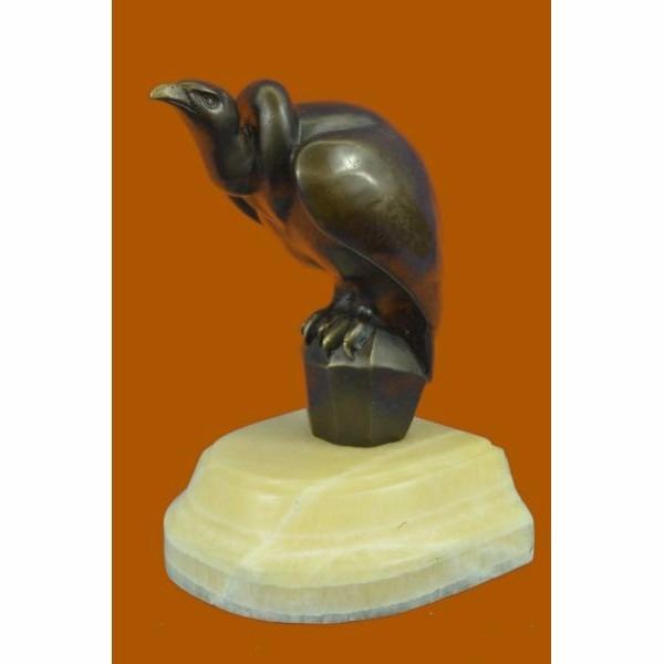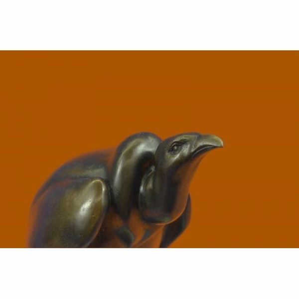 After 20 years in the animation business, sculptor Williams knows how to bring a character to life in subtle ways. He captures fleeting moments in their lives; a sunning vulture, begging baby birds, or curious crows having their way with an antique typewriter. Williams loves the permanency of bronze, its range of colors and textures. Each piece is lovingly detailed until it is just right, then matched to its own individual base, making every sculpture unique. Condition: This sculpture is in perfect condition. Bronze Dimensions with Marble Base:Height 8" x Width 5" Marble Dimensions: Diameter 5". Height without base: 6" Weight : 7 LBS Inventory: 37AL3463473