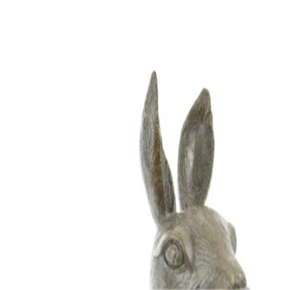 This cute bunny looks up with the sweetest look and taking a brake from a long day. This little rabbit is the perfect touch of decor for a sweet and loving home. His ears are long and he stands on his legs while looking up with full attention. His facial features are great giving him character and capturing a lovely and innocent look. This is a perfect gift to give around spring time and Easter. This sculpture was cast using the Lost Wax Method and has a two tone brown patina. Bronze Dimensions: Height 6 X Width 6 Inches. Weight: 3 LBS.