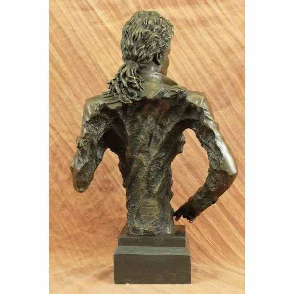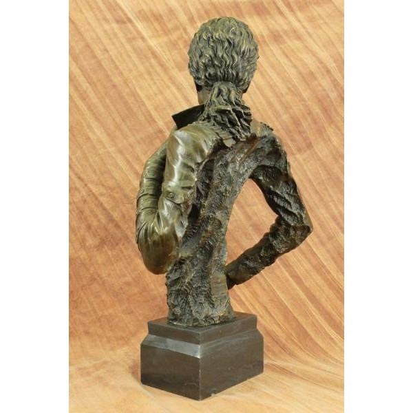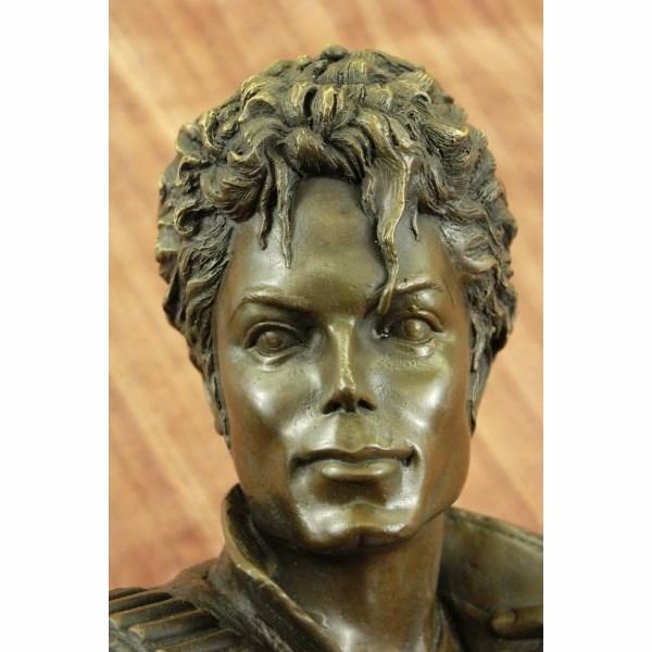 The late Michael Jackson was crowned the King of Pop long before his death. Here he is in one his most iconic dance moves. This gesture has been copied and incorporated into choreography year after year. Michael's dancing, music, and life influenced artists all over the world will continue for years to come. This bronze sculpture sits on a black marble base AND It was crafted using the lost wax method. Bronze Dimensions with Marble Base: Height 23 X Width 15 inches. Weight: 40 LBS. Please Note: This is a reproduced bronze sculpture from the original molded and signed. This featured bronze sculpture is a recast after the original, and has been done recently. This 100% bronze sculpture is an abstract piece certain to be a conversation piece.