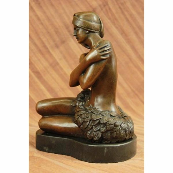 Preiss “Female nude on a stone†is an extremely delicate bronze figure, which is suitable as a noble home accessory or piece of art in your office interior. The sensual pose of the young woman draws the viewer into a contemplative depth. Her slim, well-defined body corresponds to the contemporary, feminine ideal of beauty. With crossed arms and closed eyes the nude remains in a state of physical relaxation, which gripped the viewer, if he allows himself to be engaged by them. The abstract design creates space for imagination. The sculpture is signed Preiss. Condition: This sculpture is in perfect condition. Bronze Dimensions with Marble Base:Height 10" x Width 8" Marble Dimensions:Diameter 8". Height without base: 9" Weight : 12 LBS Inventory:28DS5826882