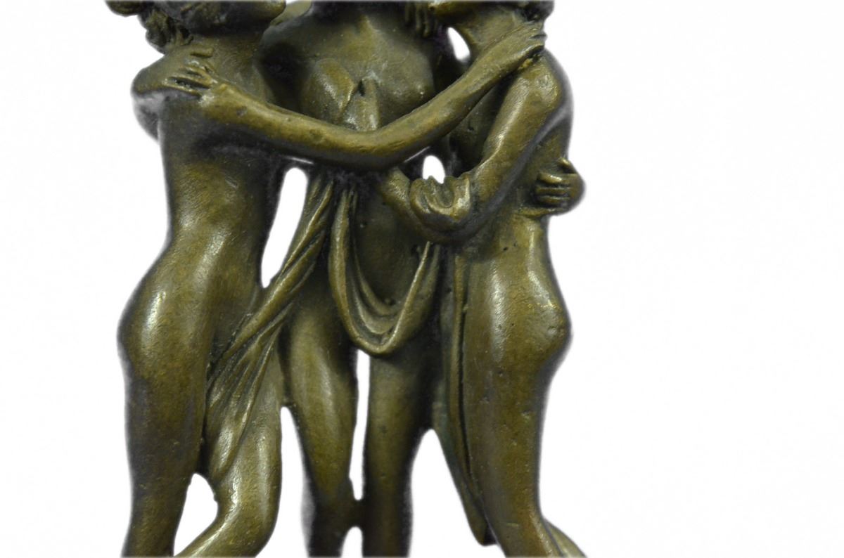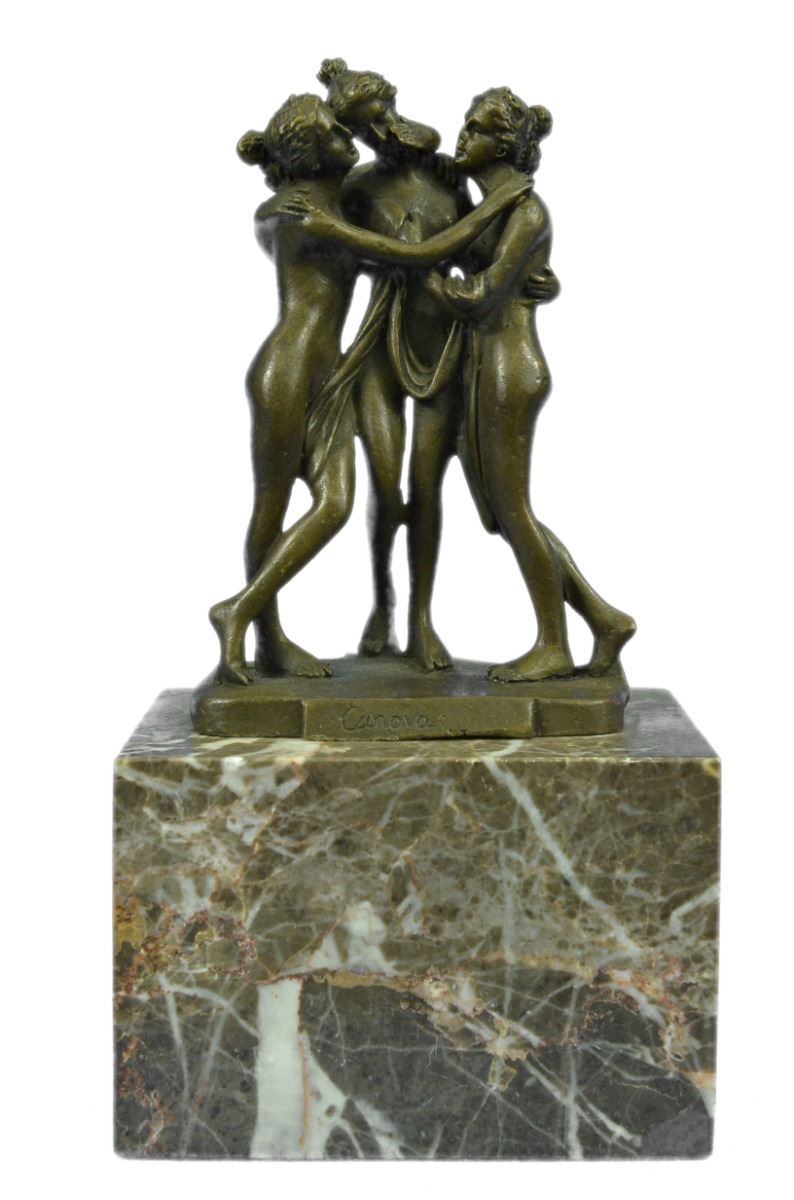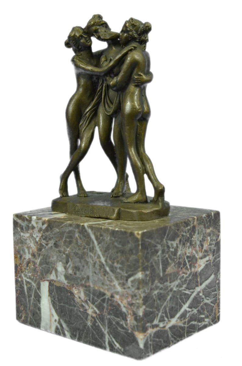 Three Graces If Only These Three Young Beauties Could Talk! These Three Personifications Of Gracefulness From The Victoria & Albert Museum In London Were The Constant Attendants Of Aphrodite, The Goddess Of Love. Sculpted By The Foremost Neoclassical Sculptor In Europe, Antonio Canova In 1814, This Sculpture Exemplifies A Common Theme In Art From This Period--A Revival Of Mythological Themes And Classical Ideals From Greco-Roman Antiquity. This Sculpture Will Be A Centerpiece Of "Gossip" As You Admire It With Your Friends.Three Graces Made From Solid Bronze With A Black Marble Base. Bronze Dimensions With Marble Base: Height 8 X Width 4 inches. Weight: 5 Lbs.