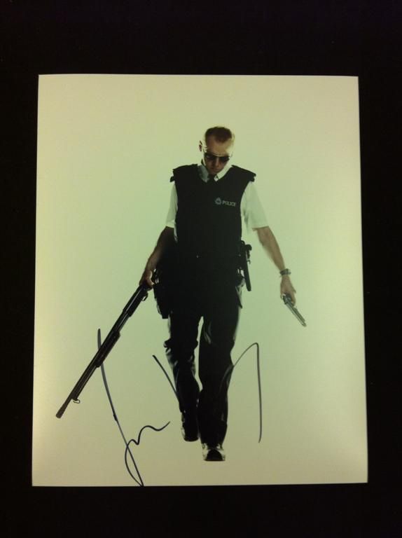 8 x 10 color photo of Simon Pegg in Hot Fuzz, signed by the actor in black felt pen. Signed at the premiere of Paul.