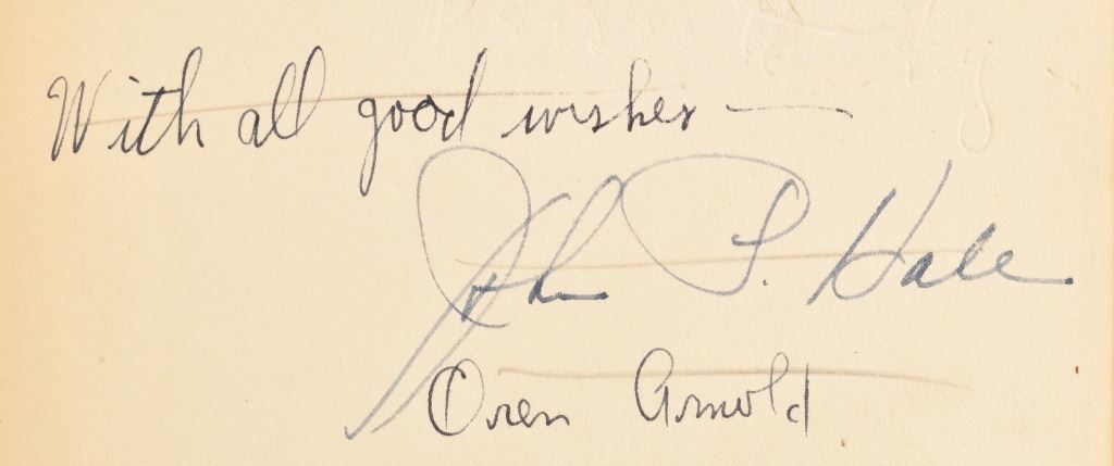 Signed by both Oren Arnold and John P. Hale. 1940 edition reprint. Published by The Macmillan Company New York.