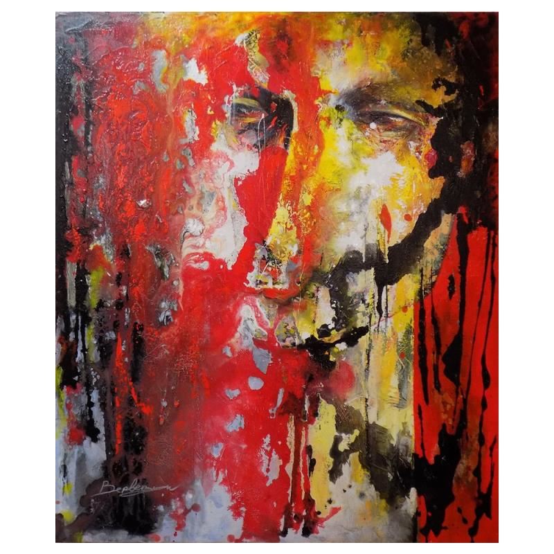 "Hot Mess" is an original acrylic mixed media painting on canvas by Ara Berberyan. The piece is hand signed and comes with a letter of authenticity. Measures approximately 36" x 30".