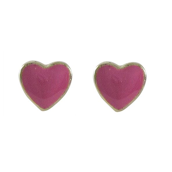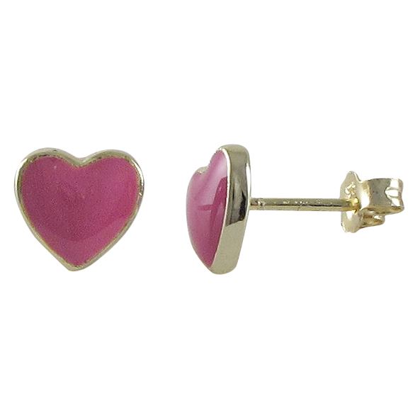 Hot Pink Enamel Heart Stud, Gold Over Sterling Silver Post Earrings-0.31"