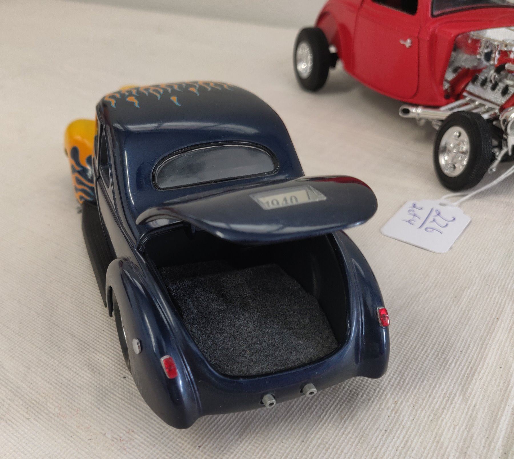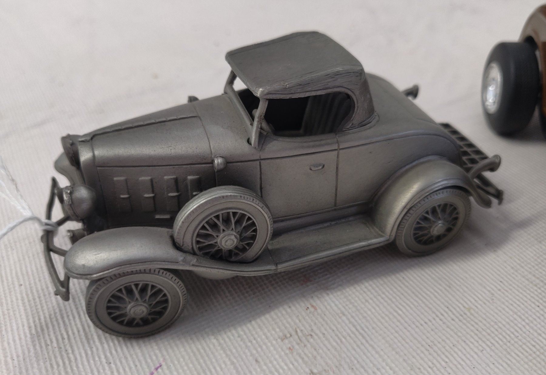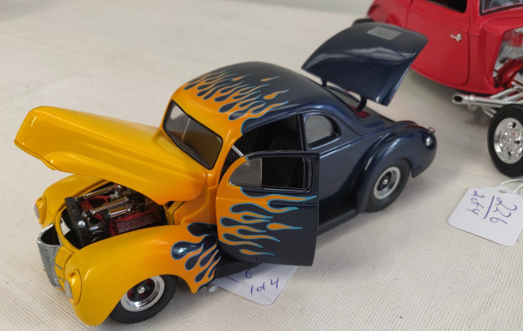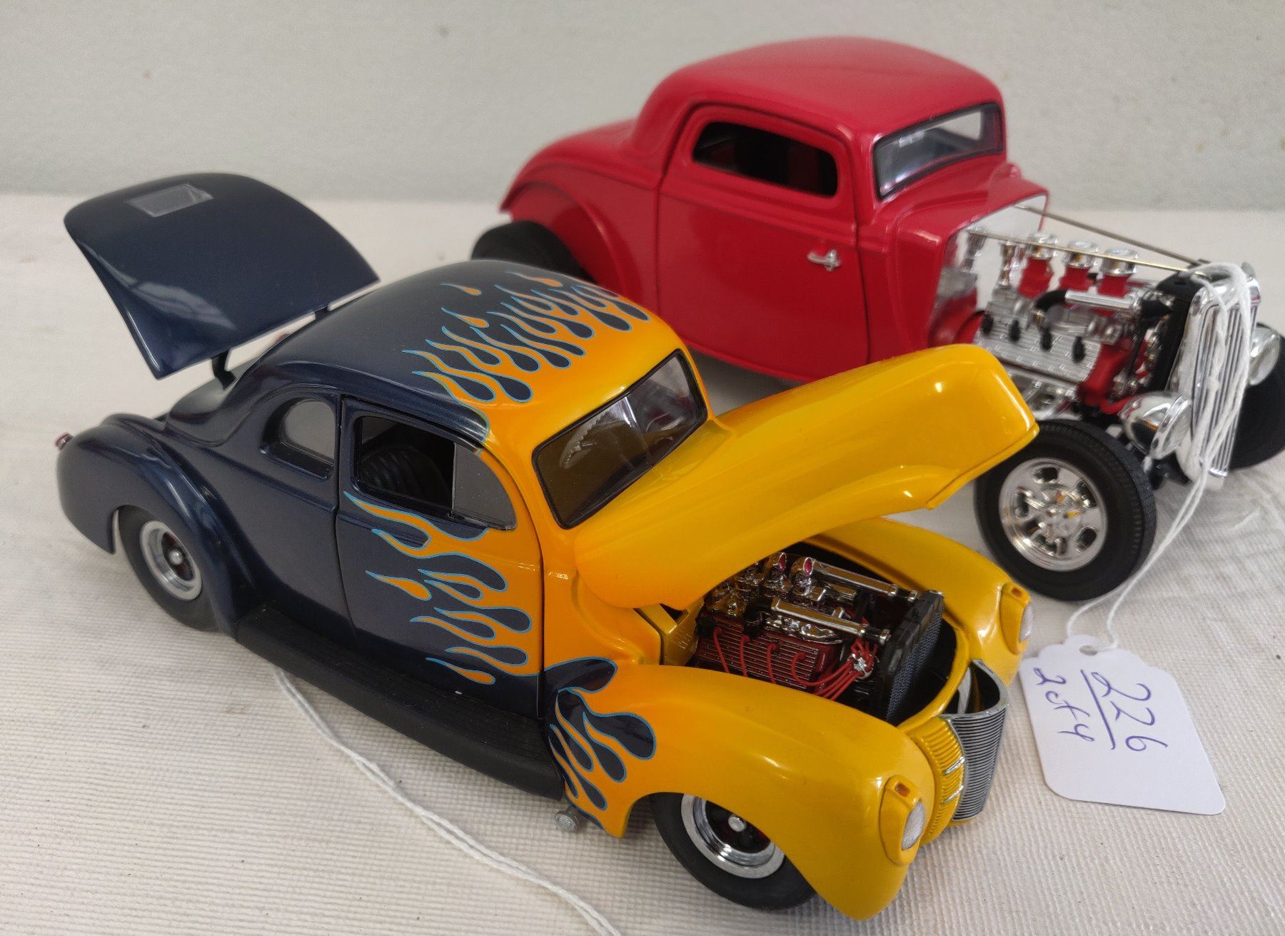Hot Rod Model Toy Collection, modern items. Made of die cast metal and plastic, the items measure 4 3/8" to 7 7/8' long. China. Included are a 1932 Ford High boy in 1:27 scale ratio by SmartToys, a 1932 Chevy Sport Roadster (heavy item), a 1940 Ford Hot Rod by Danbury Mint w/box, and a 1930s Ford Roadster by ERTL in red. Condition: Good, see images. Shipping: $34.50 w/insurance and signature.