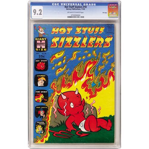 <B>Hot Stuff Sizzlers #10 File Copy (Harvey, 1962) CGC NM- 9.2 Off-white to white pages.</B></I> Appearances by Stumbo, Professor Knutts, and Princess Charma. Overstreet 2006 NM- 9.2 value = $70. CGC census 3/07: 2 in 9.2, none higher. <I> From the Cary and Cheryl Porter Collection.</B></I><BR><BR><b>Shipping:</b> Comics - Slabbed (certified) (<a target="_blank" href="http://www.heritageauctions.com/common/shipping.php">view shipping information</a>)