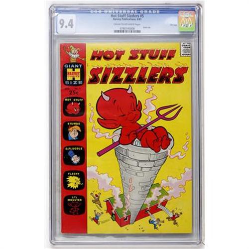 <B>Hot Stuff Sizzlers #5 File Copy (Harvey, 1961) CGC NM 9.4 Cream to off-white pages.</B></I> Giant-size issue. Overstreet 2007 NM- 9.2 value = $105. CGC census 3/08: 2 in 9.4, none higher.<BR><BR><b>Shipping:</b> Comics - Slabbed (certified) (<a target="_blank" href="http://www.heritageauctions.com/common/shipping.php">view shipping information</a>)