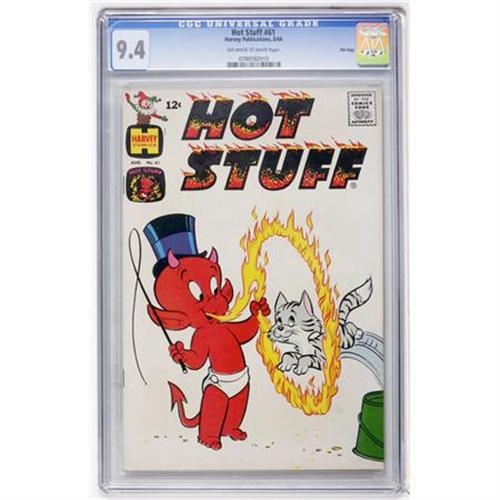 <B>Hot Stuff, the Little Devil #61 File Copy (Harvey, 1964) CGC NM 9.4 Off-white to white pages.</B></I> Overstreet 2007 NM- 9.2 value = $30. CGC census 1/08: 1 in 9.4, 2 higher.<BR><BR><b>Shipping:</b> Comics - Slabbed (certified) (<a target="_blank" href="http://www.heritageauctions.com/common/shipping.php">view shipping information</a>)