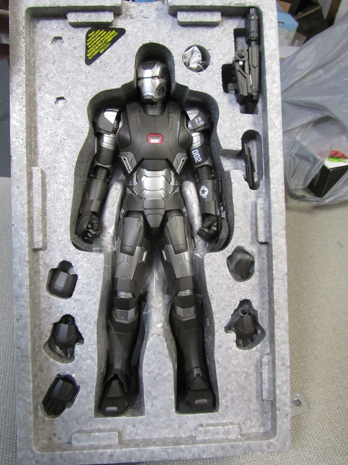 Authentic and detailed fully realized likeness of War Machine Mark II, from  Iron Man 3  with metallic black, light grey and silver color scheme