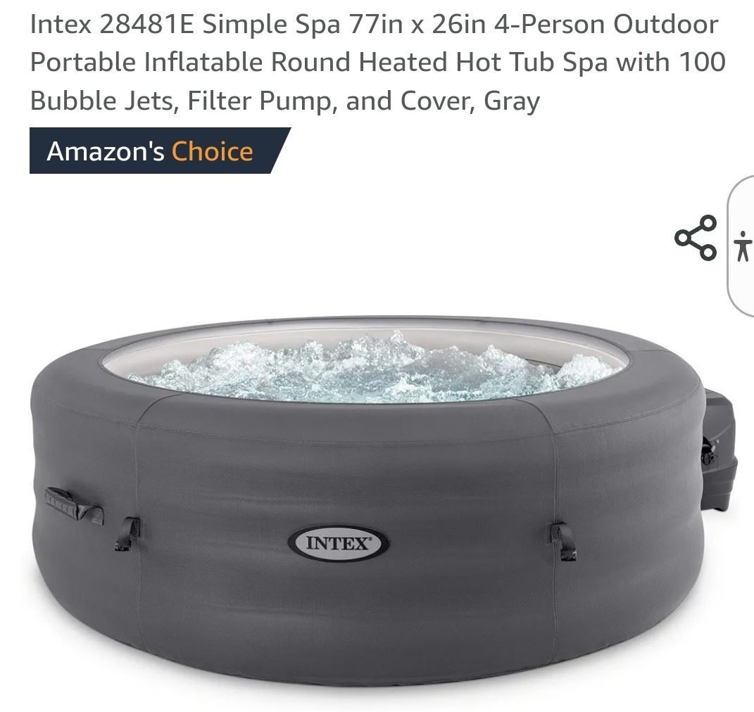 Intex heated outdoor inflatable spa, 77x26 inches, four-person capacity with 100 bubble jets, includes cover, new.