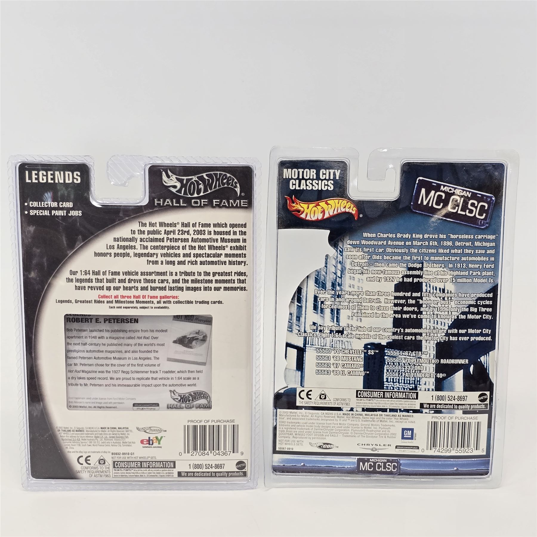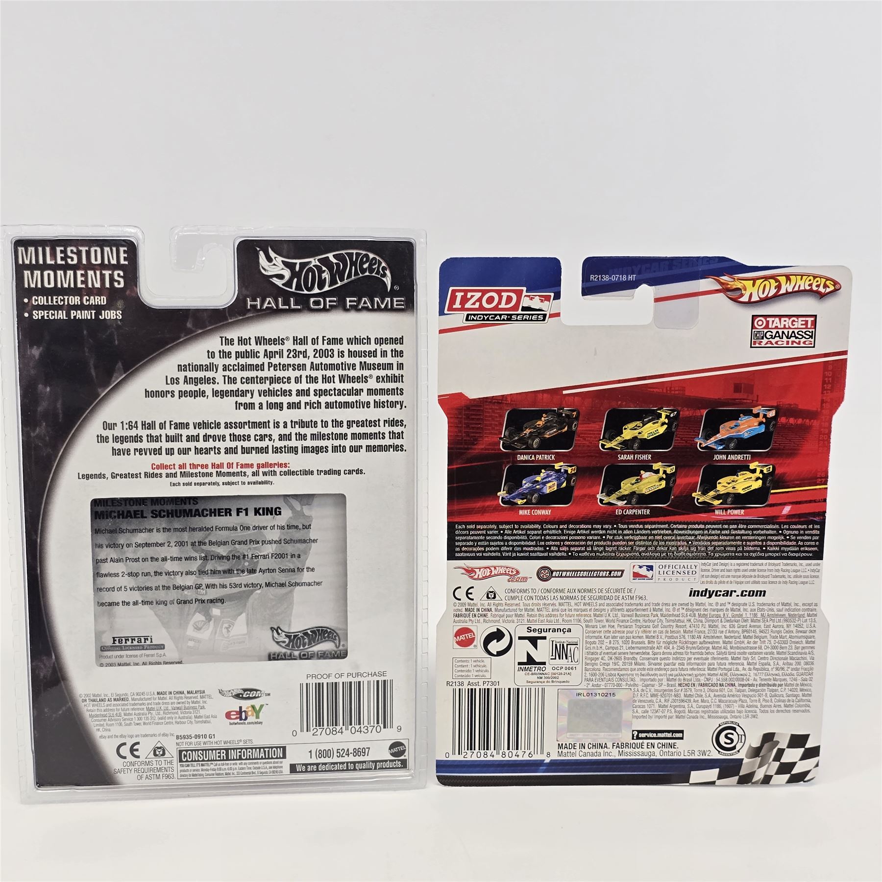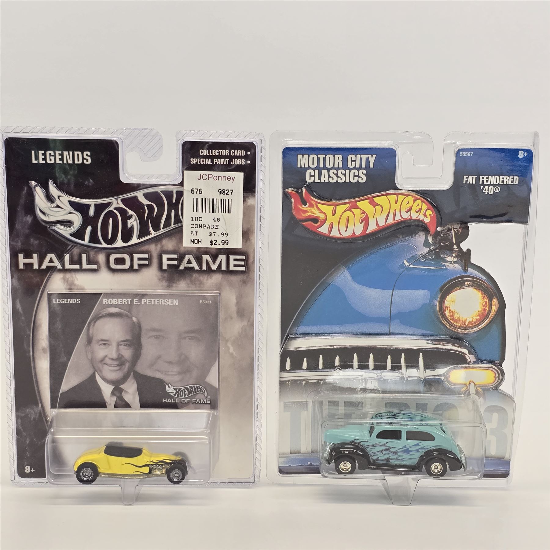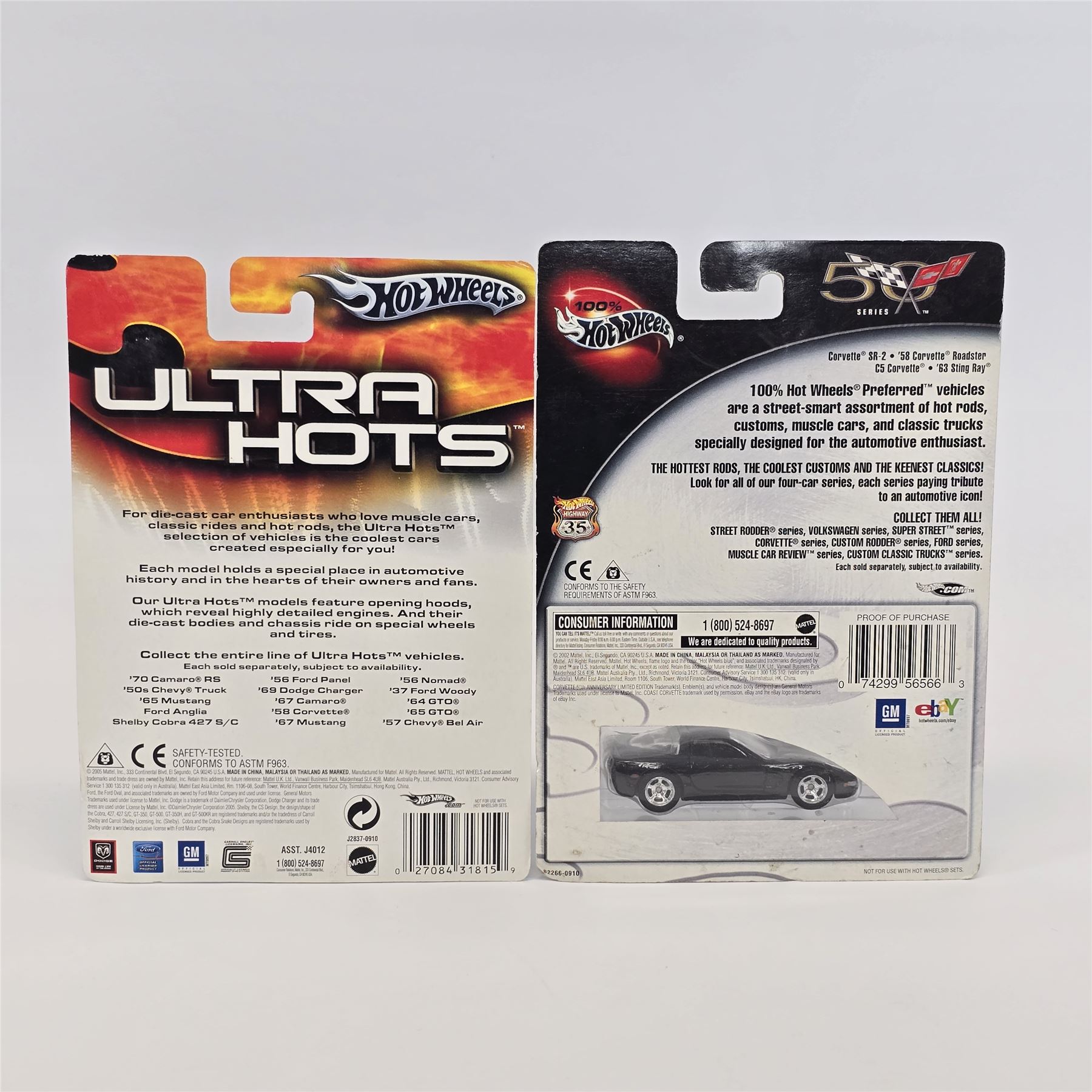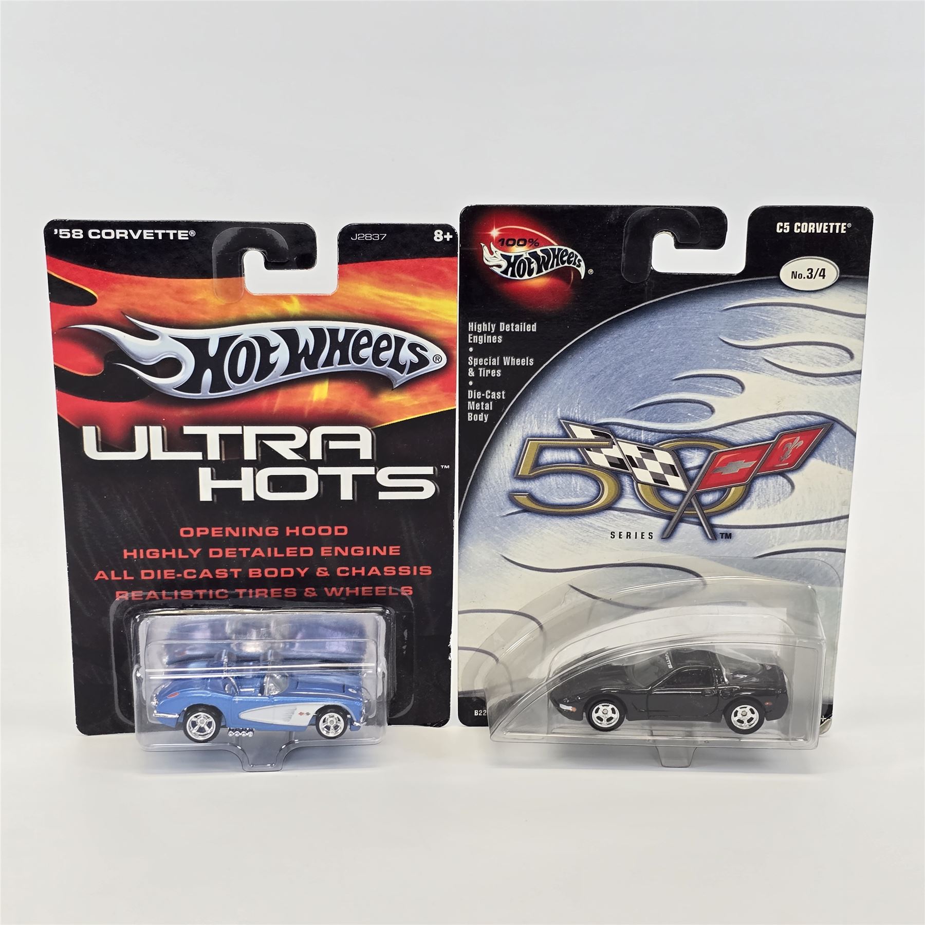 Hot Wheels assorted lot of 8 including, Custom Rodder '57 Cadillac, Hall Of Fame '59 Cadillac, Peterson Hall of Fame Hot Rod, Motor City Classics Fat Fender '40, Scott Dixon Izod Indy car, Michael Schumacher F1 racer, Ultra Hots '58 Corvette and C5 Corvette