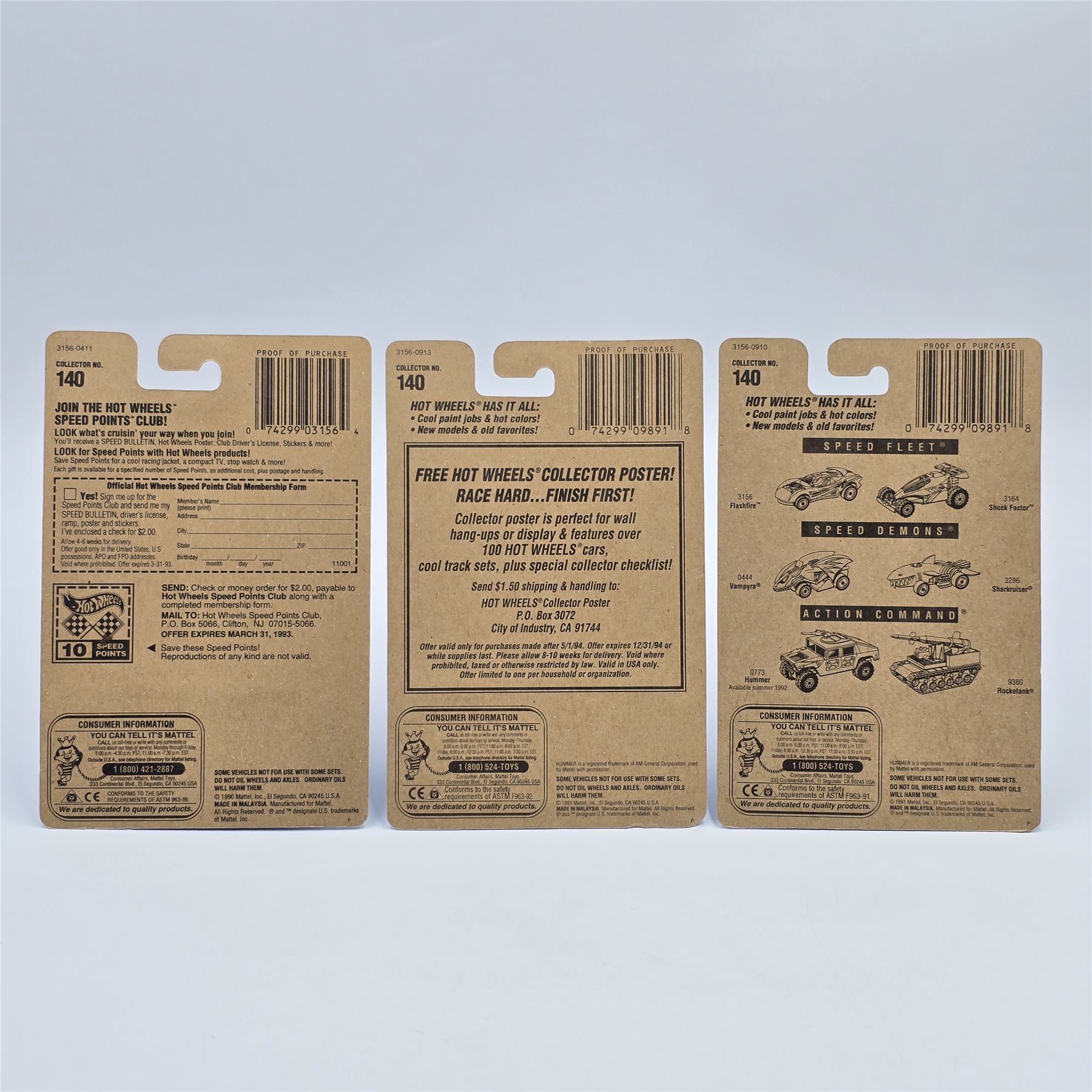 Hot Wheels Blue Card #140 Flashfire lot of 3, one has basic wheels the other 2 have UH wheels, the UH wheel versions have the car facing opposite directions& nbsp;