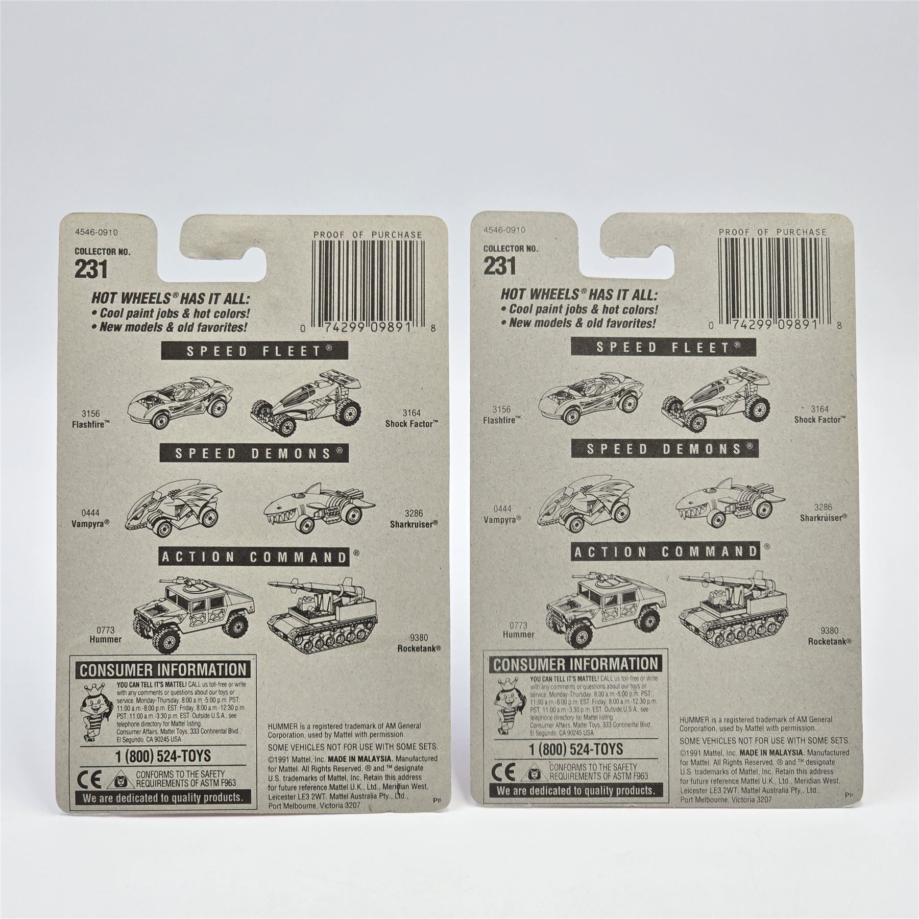 Hot Wheels Blue Card #231 Mini Truck pair, includes one with 5 spoke wheels and the other has 5 hole rims