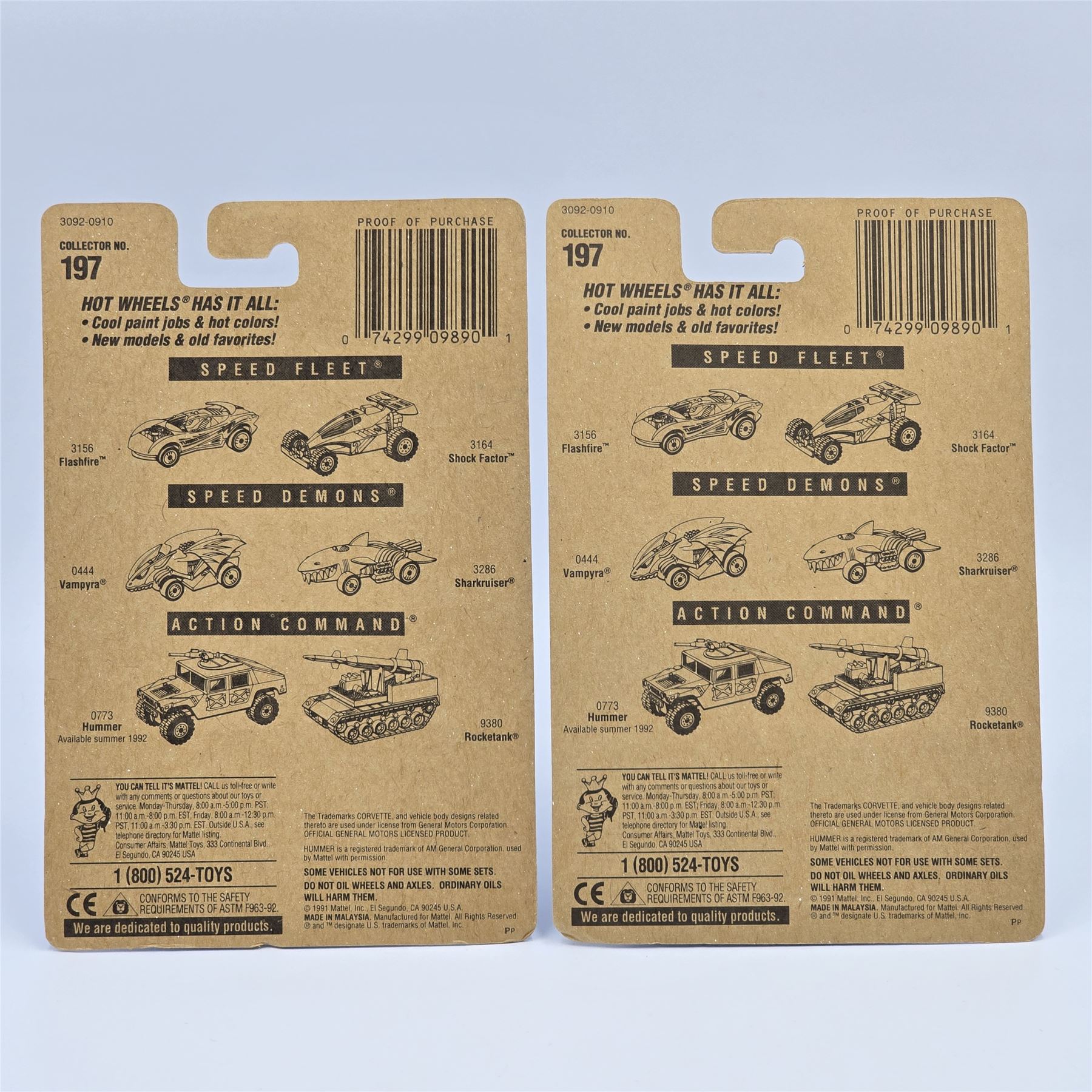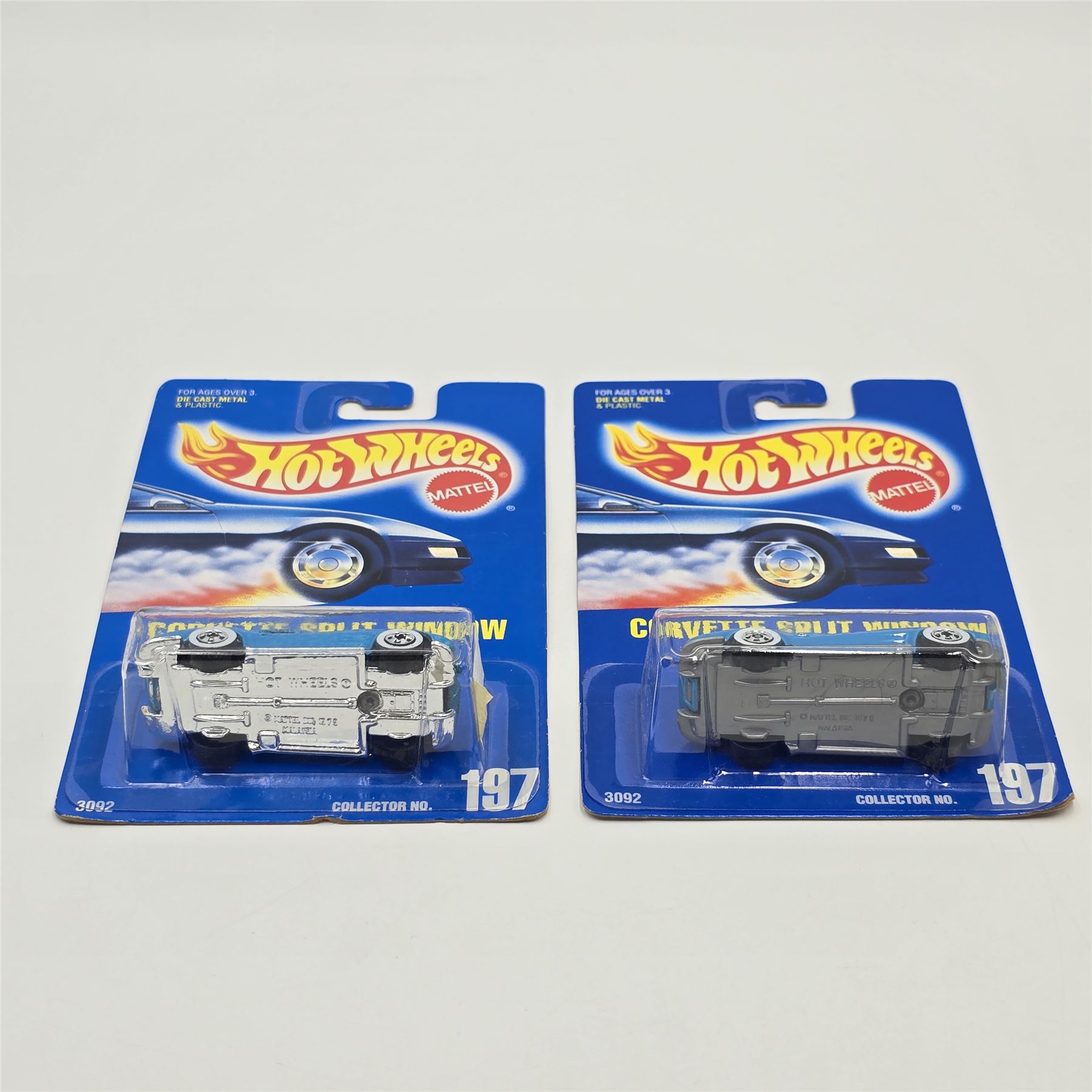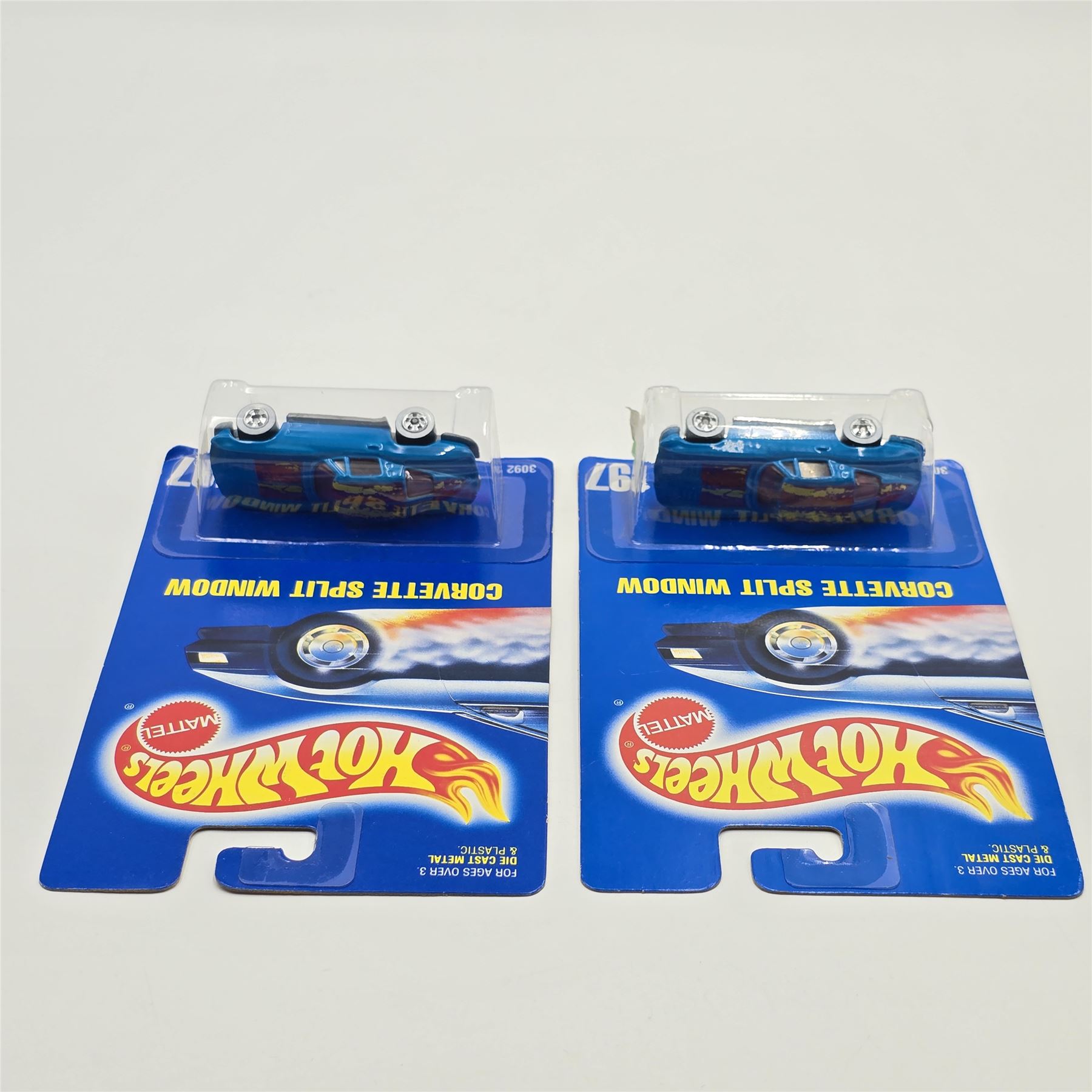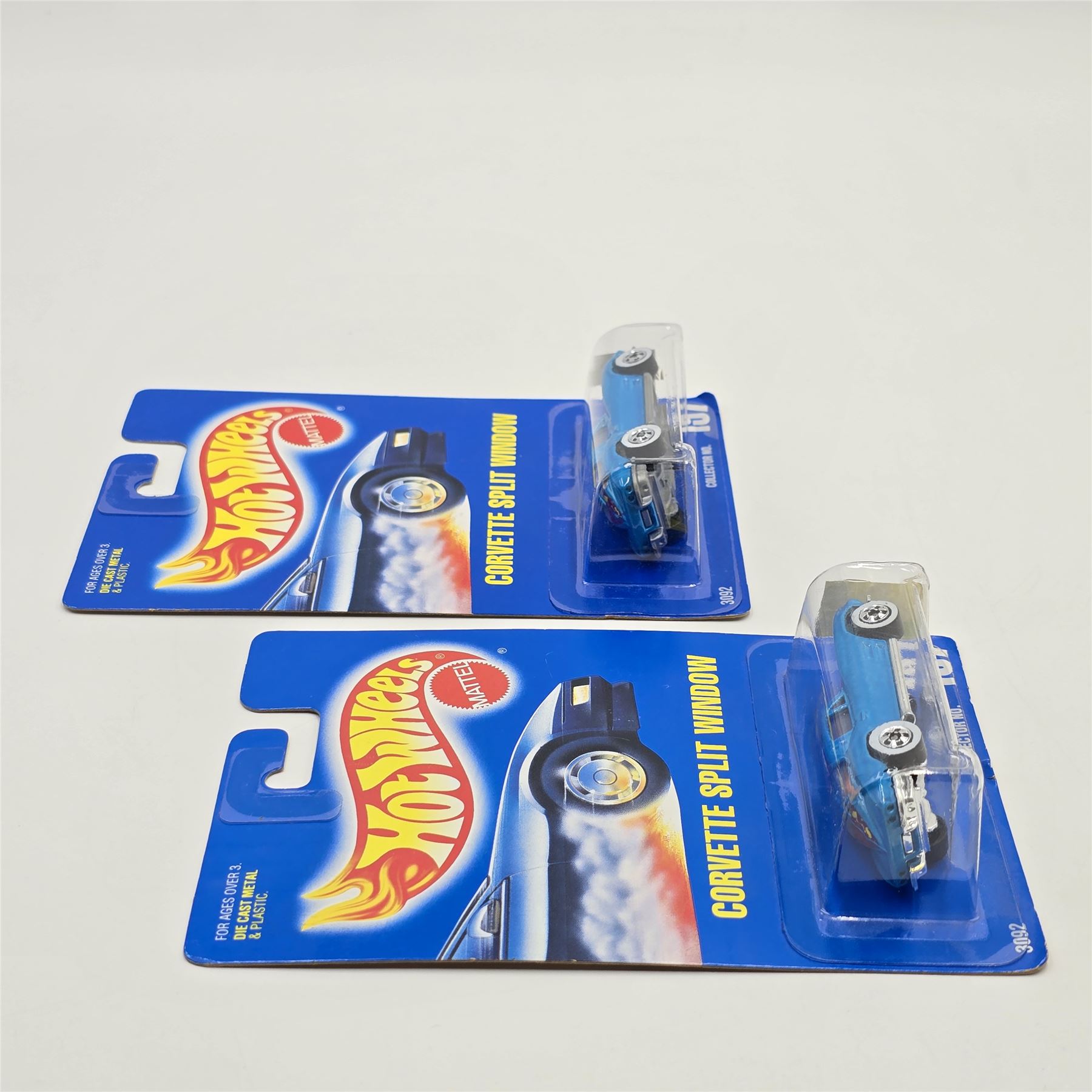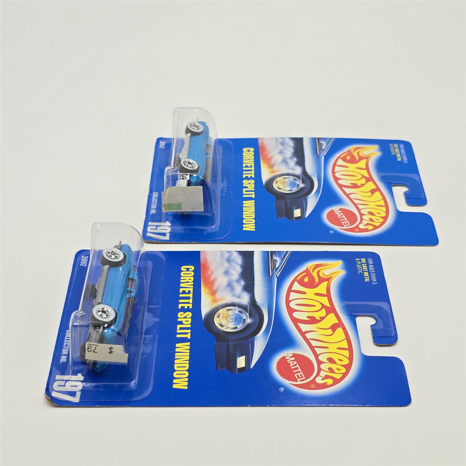 Hot Wheels Blue Card #197 Split Window Corvette Pair, one has a chrome base the other has grey plastic base