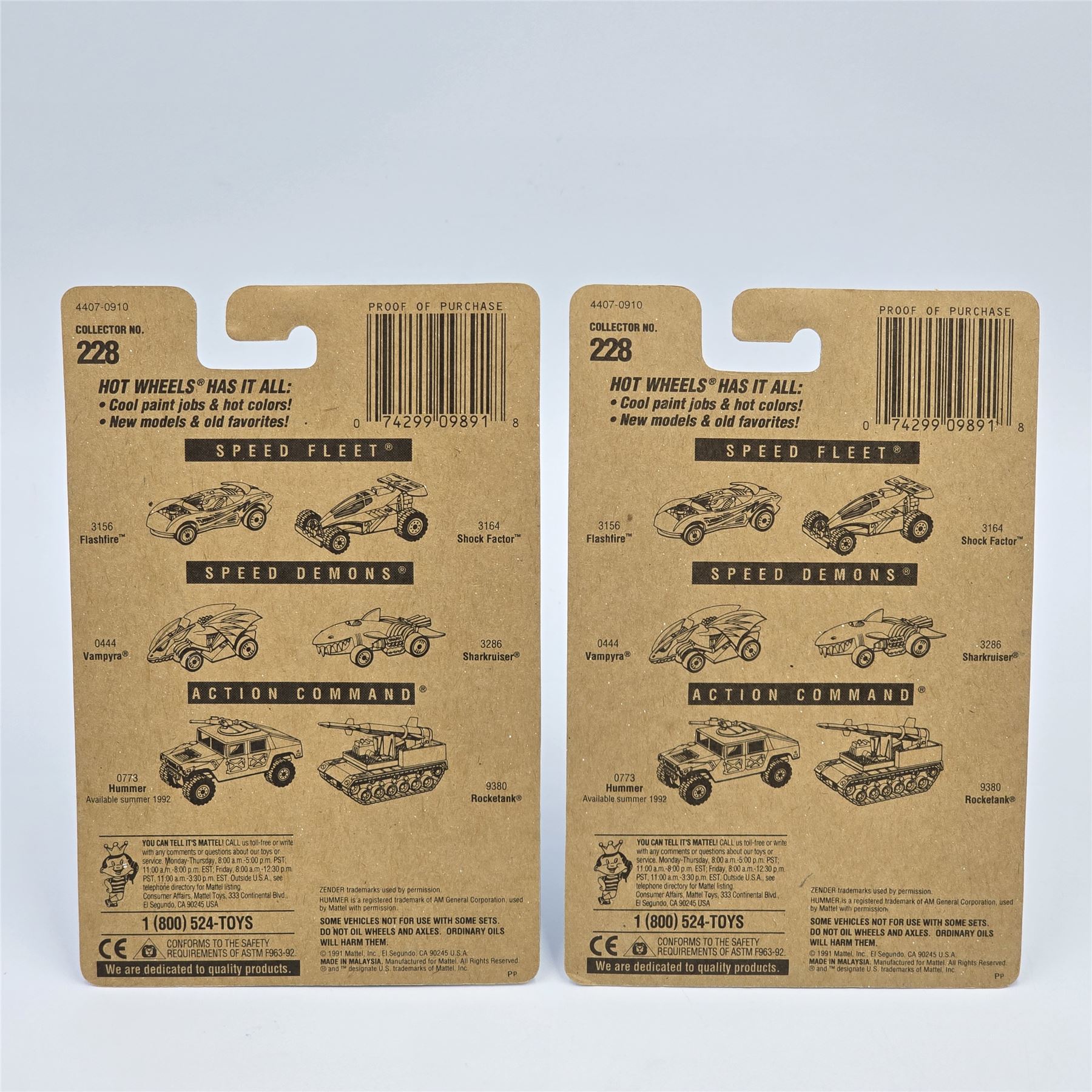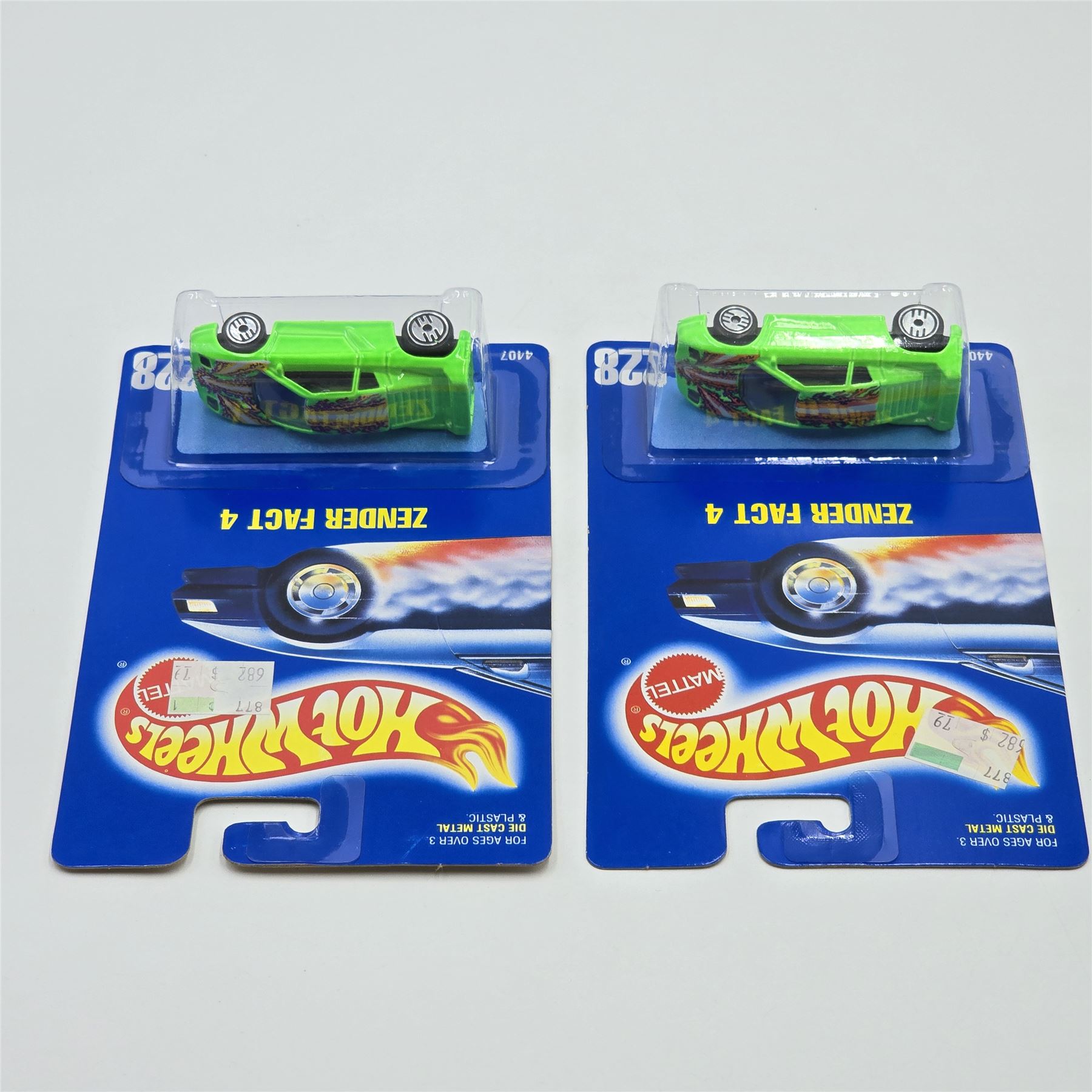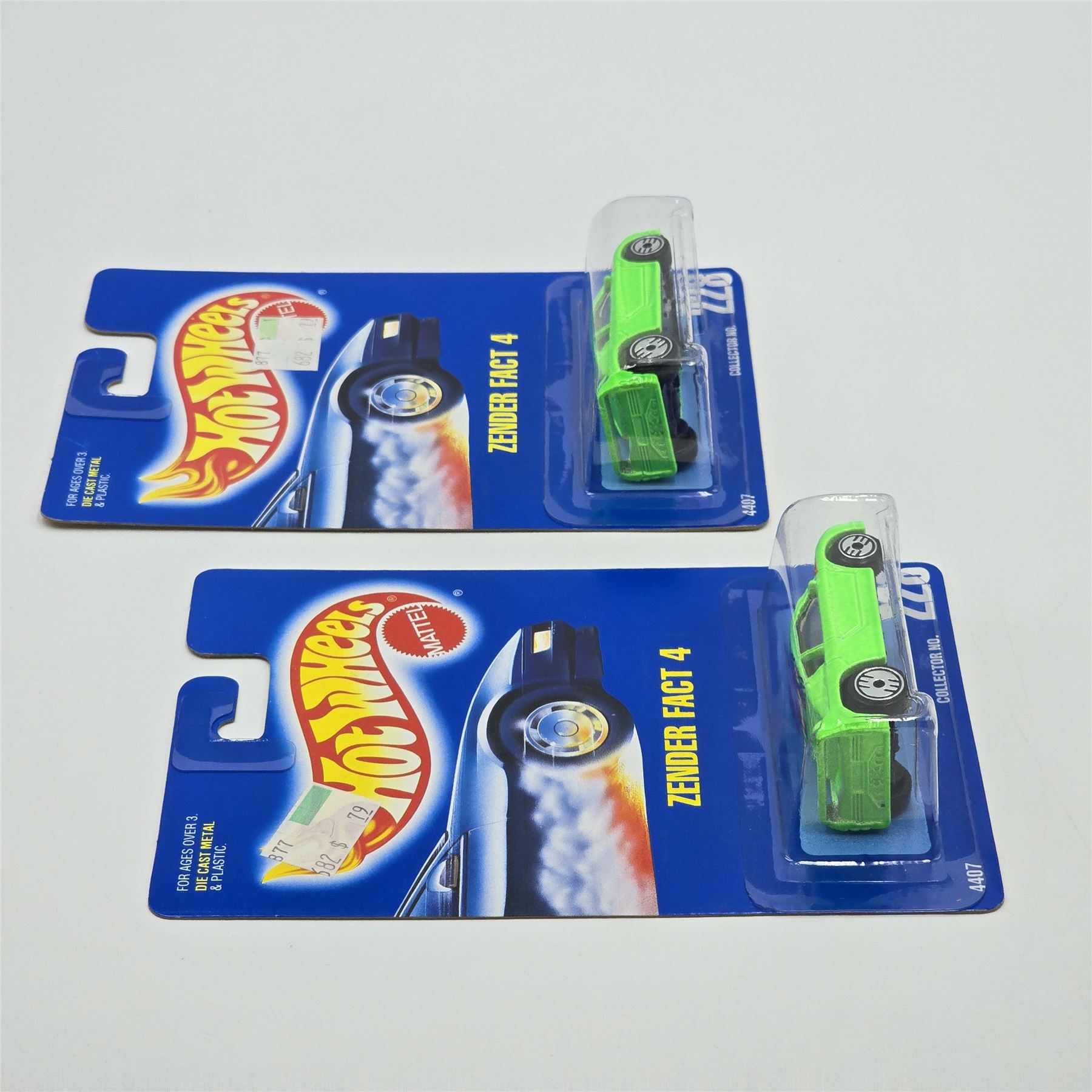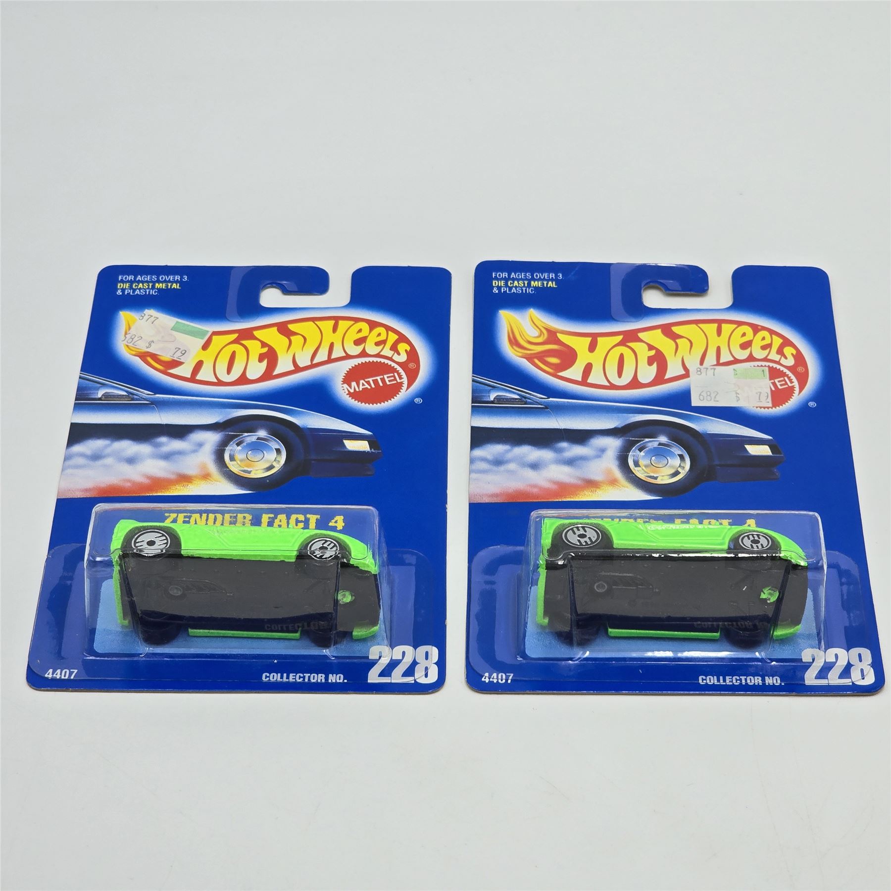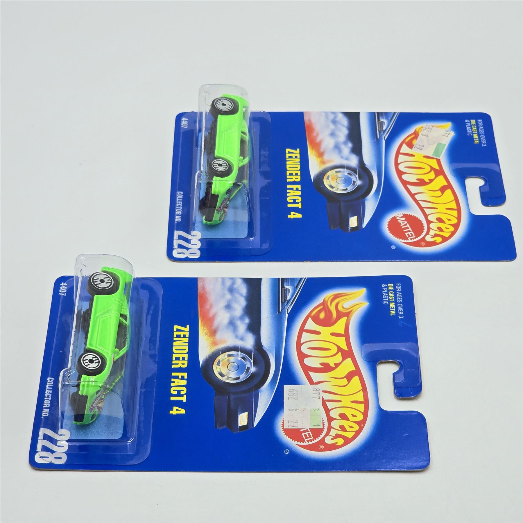 Hot Wheels Blue Card #228 Zender Fact 4 pair, these appear to be identical with Fluorescent green paint, both have UH wheels