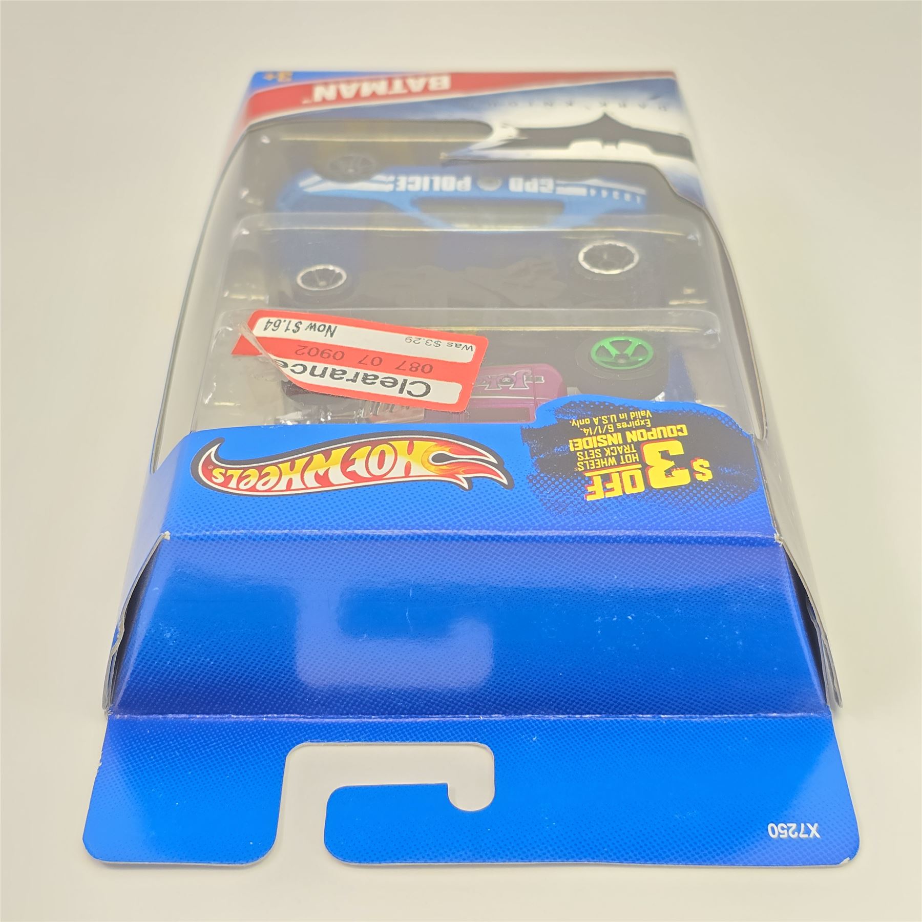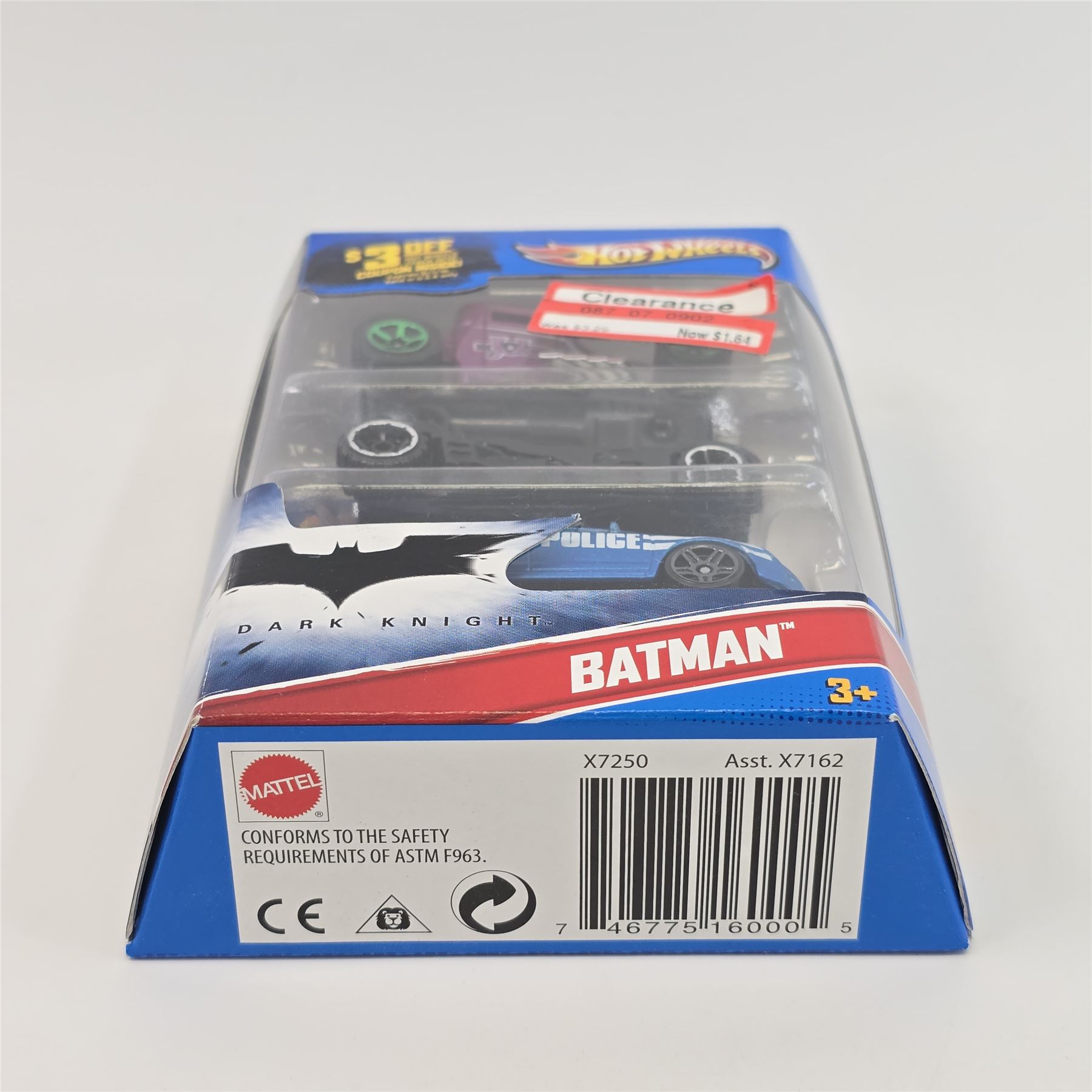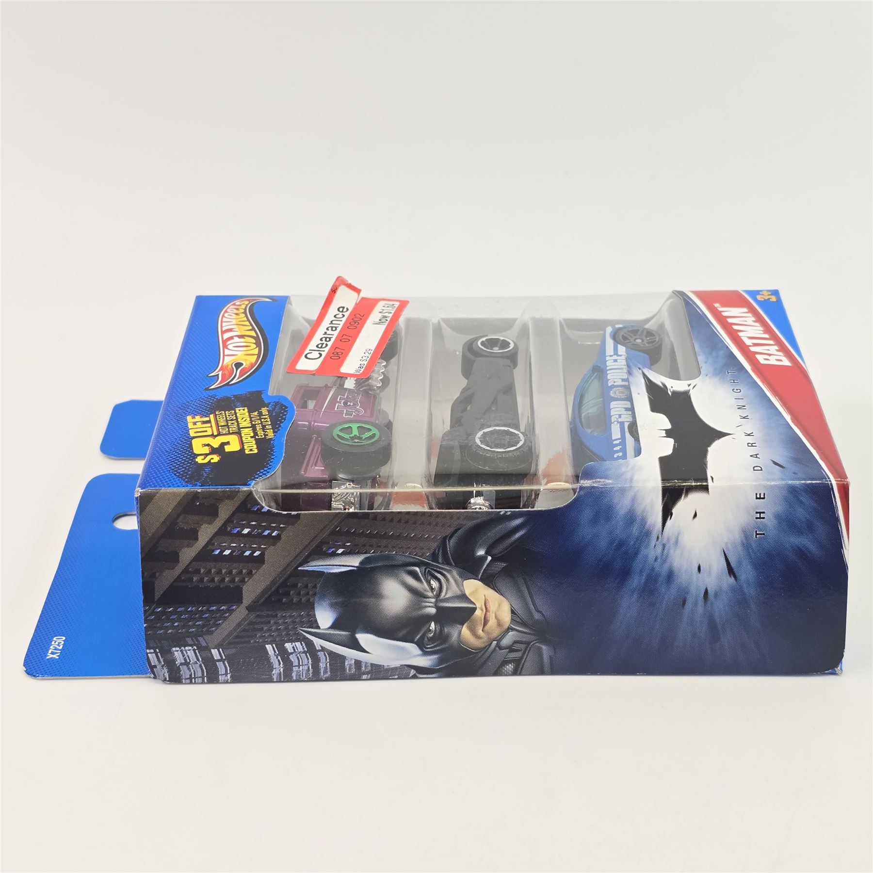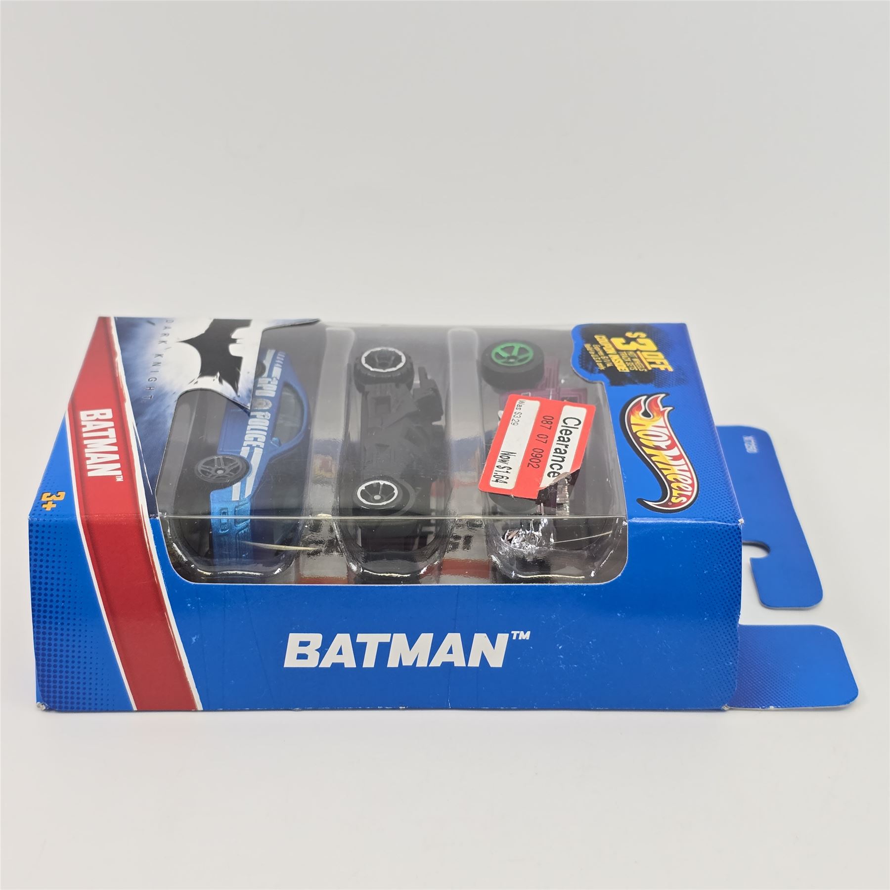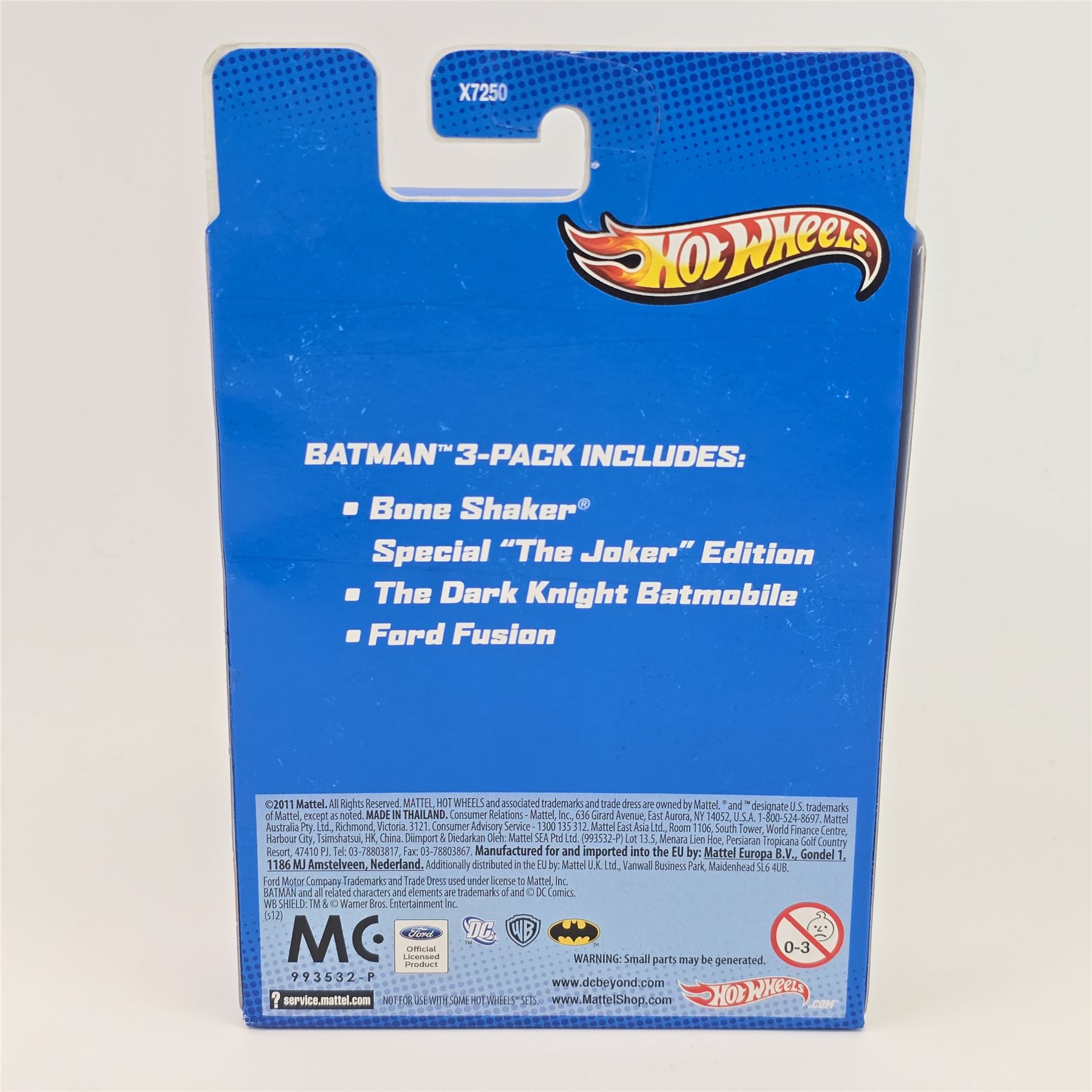Hot Wheels Dark Knight Batman 3 pack, includes - Joker face variation bone shaker, Batmobile and Police Cruiser