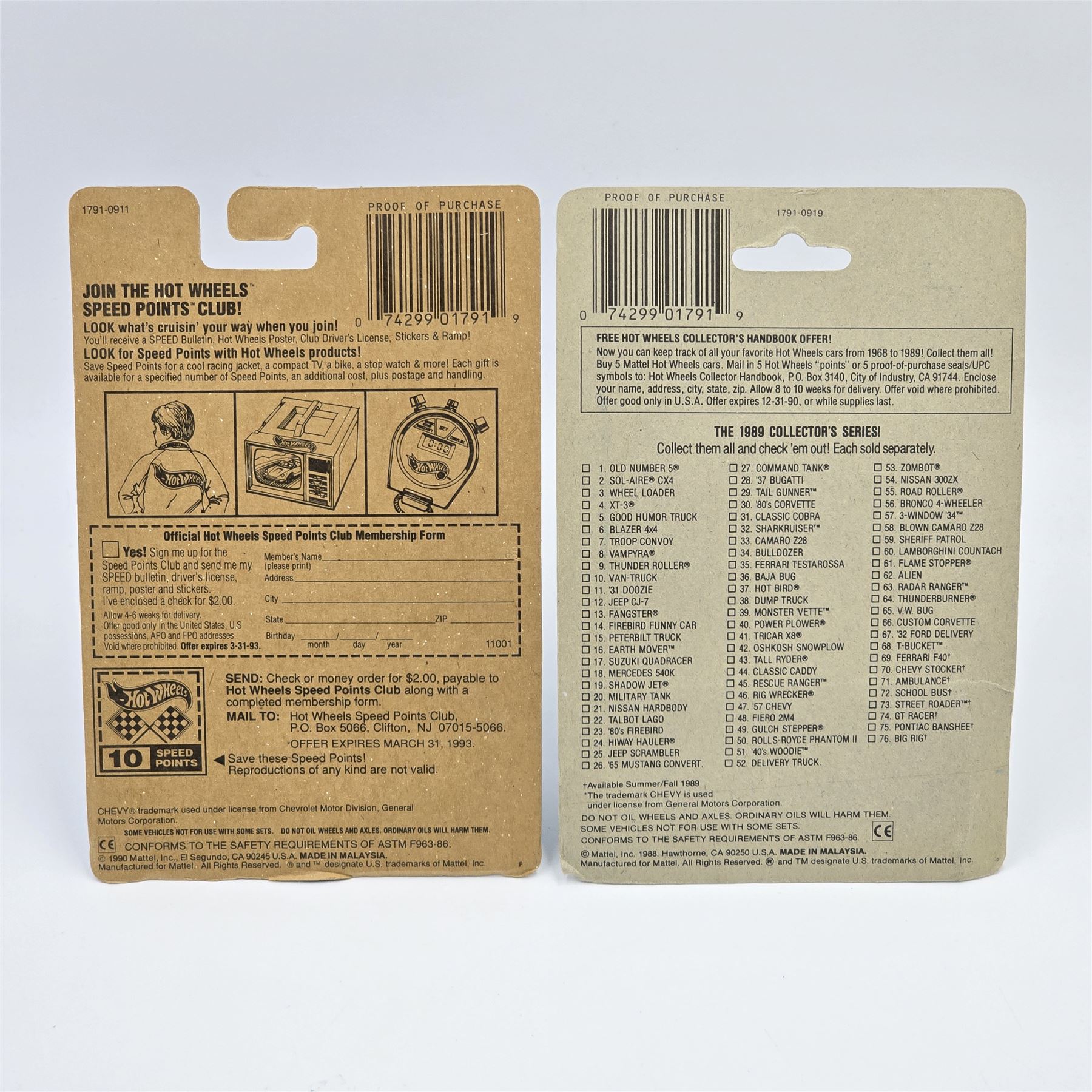 Blisters: Clear on the Blue Card, the Speed Fleet is yellowed, both are crack free and firmly attached to the cards